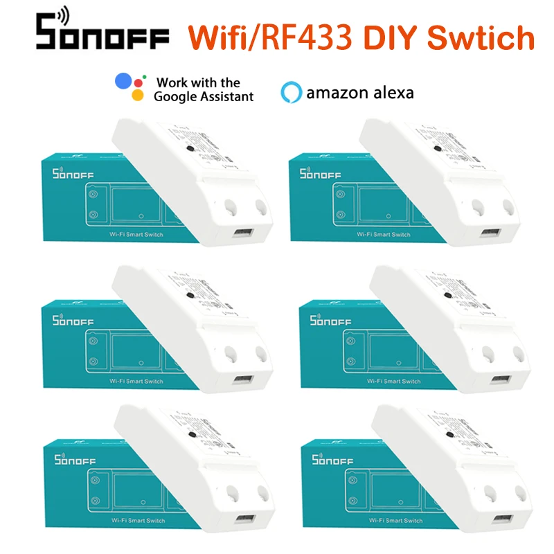 Умный светильник ключатель света SONOFF RF R2, 433 МГцWi-Fi, беспроводной, дистанционное управление через приложение eWelink, модули автоматизации, работа с Alexa, Google Home