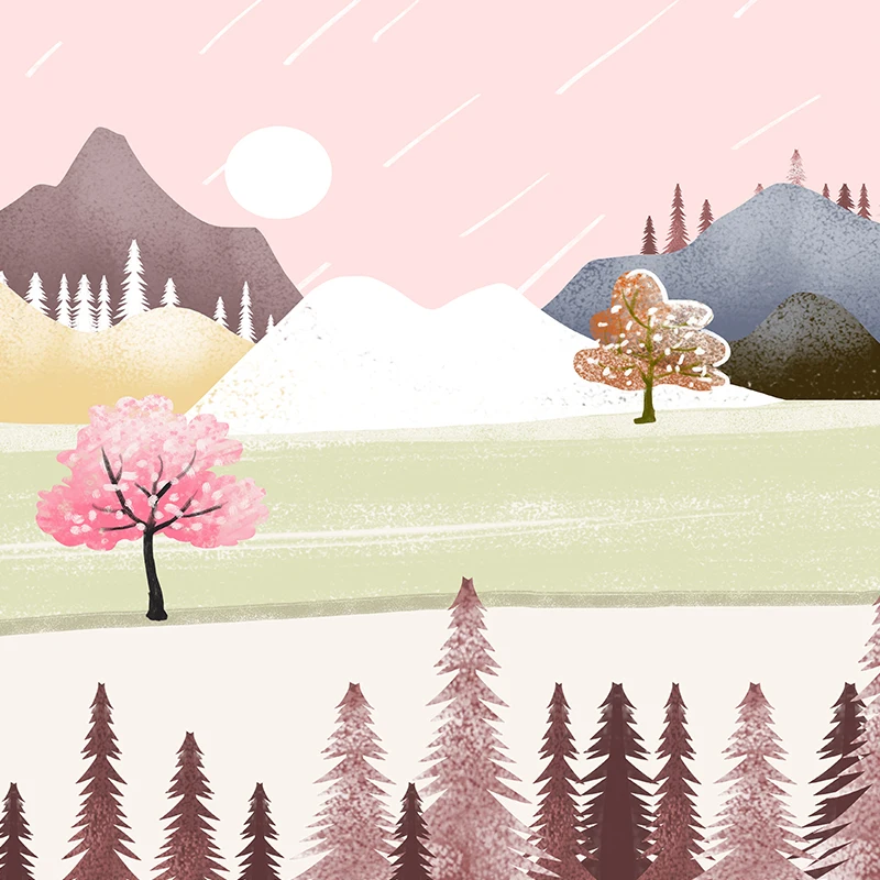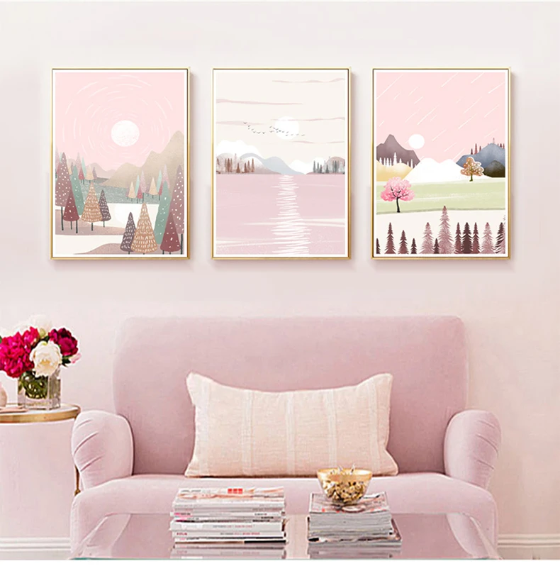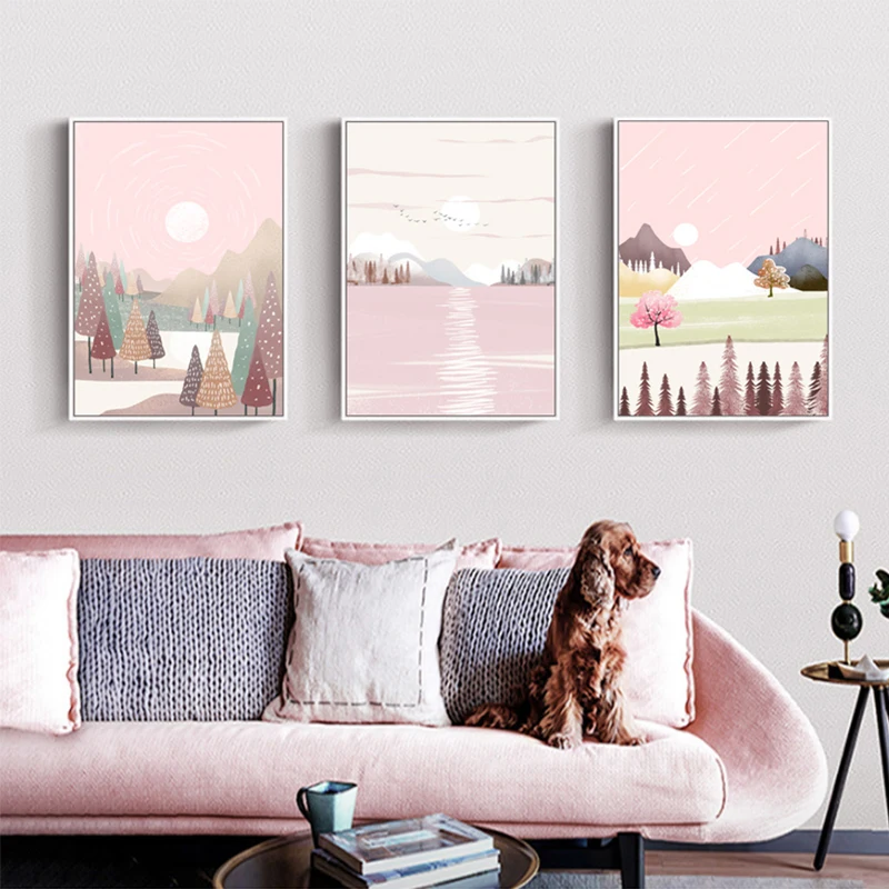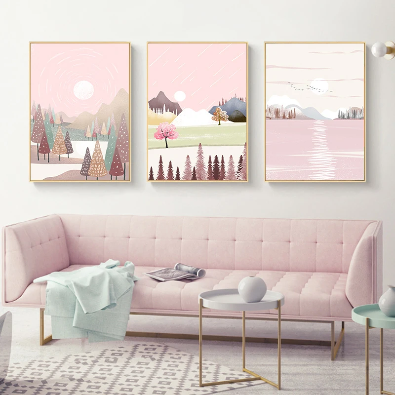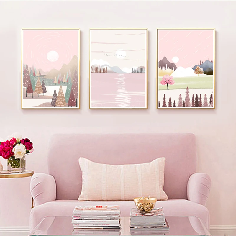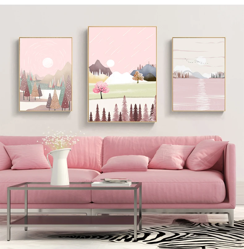 Абстрактный пейзаж, настенная живопись на холсте, розовый небесно-г...