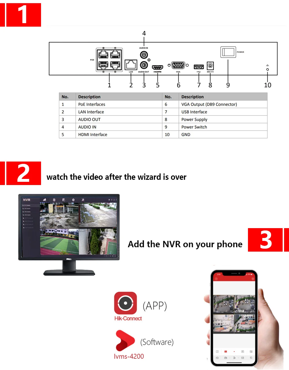 1. this kit NVR is Original Hikvision NVR, Model: DS-7604NI-K1/4P.
