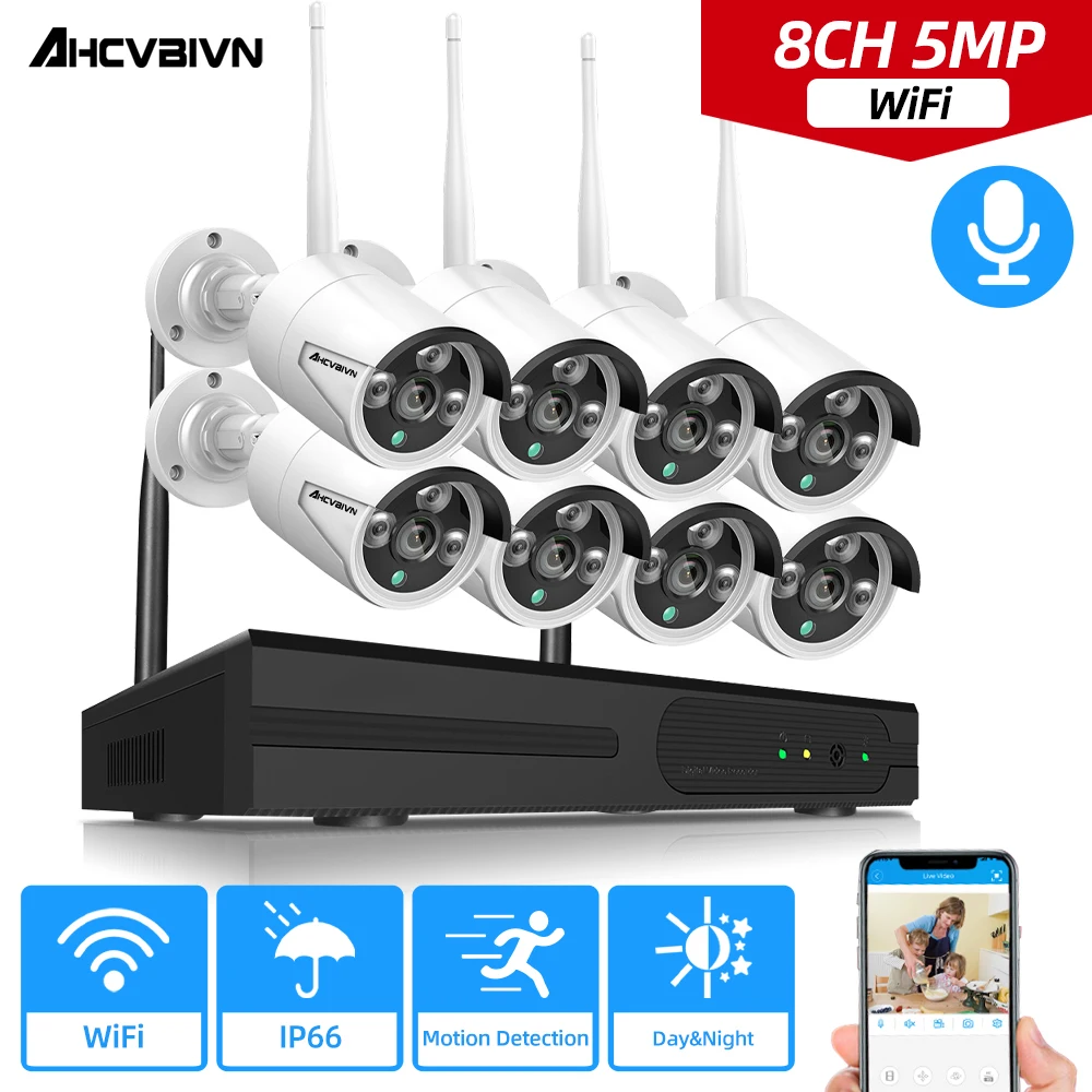 Комплект беспроводной системы видеонаблюдения, 8 каналов, уличный водонепроницаемый сетевой видеорегистратор 5 МП, Wi-Fi, система безопасности, комплект беспроводной системы видеонаблюдения 5 Мп