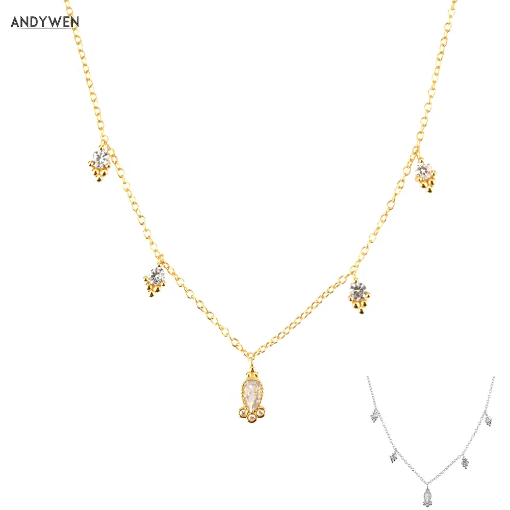 Очаровательное ожерелье ANDYWEN из стерлингового серебра 925 пробы с золотистым камнем, Женская мода 2021, изящная бижутерия, роскошный подарок