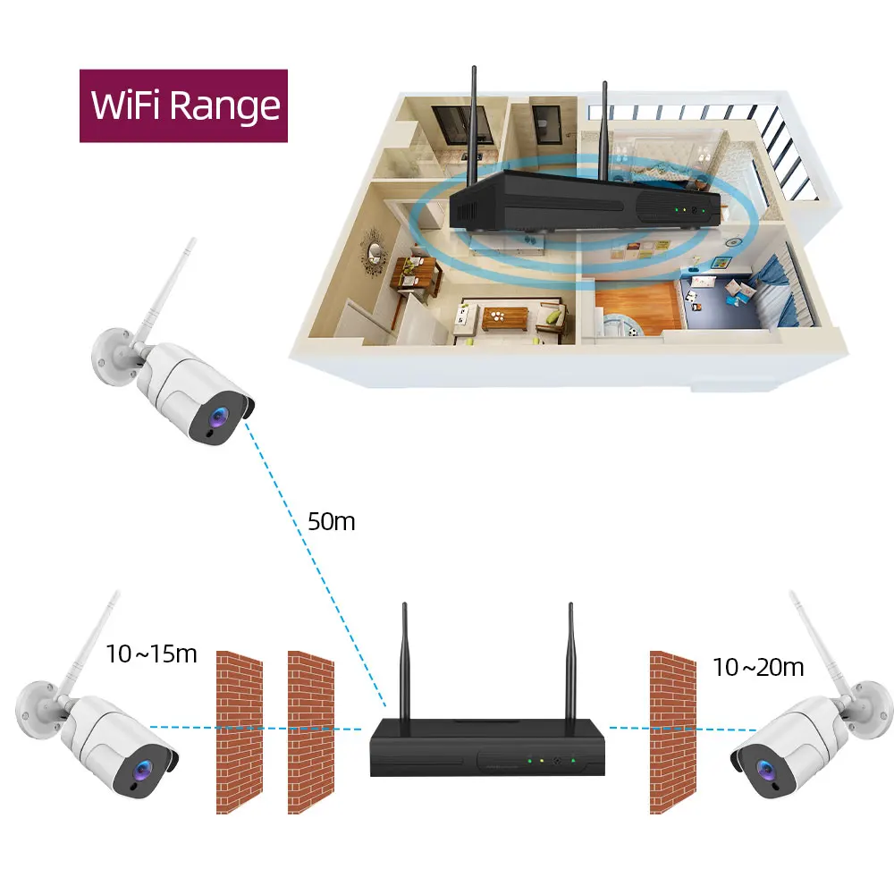 Беспроводные соединения между камерами и NVR, беспроводная передача до 50 метров (без препятствий)