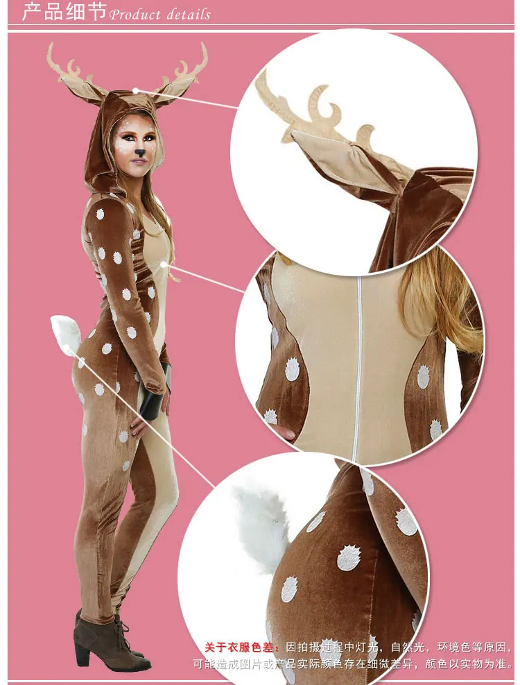 Сексуальный костюм для косплея sika deer на Хэллоуин, для взрослых, детей, женщин, животных, тонкий костюм с изображением оленя, зимний комбинезон, карнавальный костюм, Рождественский женский костюм
