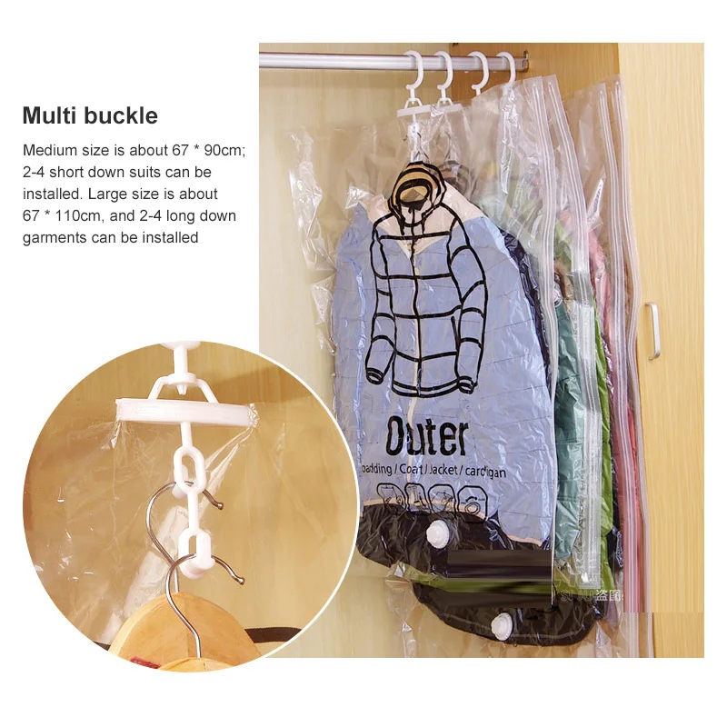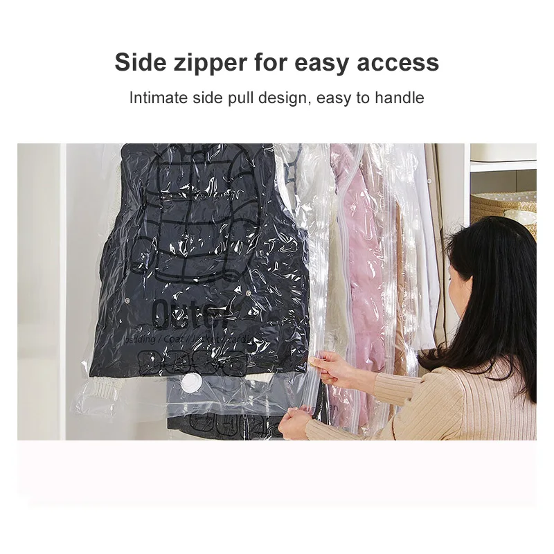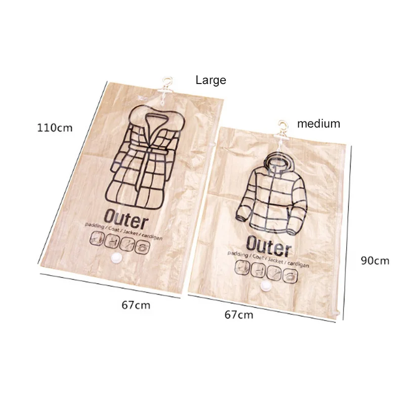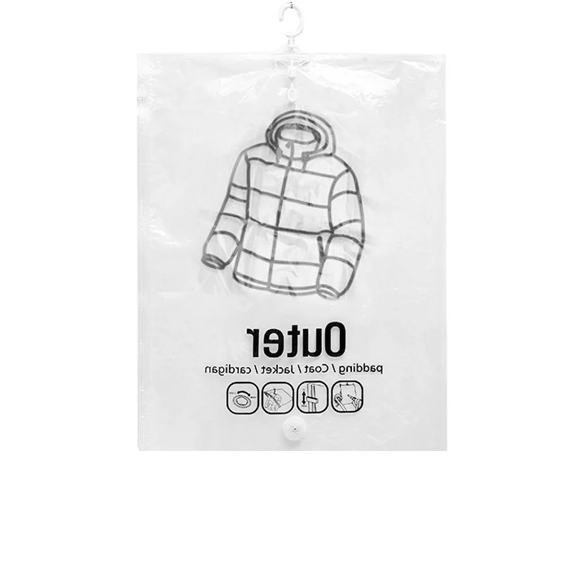 1. Прозрачный ПЭ + ПЭТ материал, компактный клапан, интимная боковая конструкция, легкая компрессионная подвеска, пуховики, пальто и т. Д., экономия места, чистый шкаф.