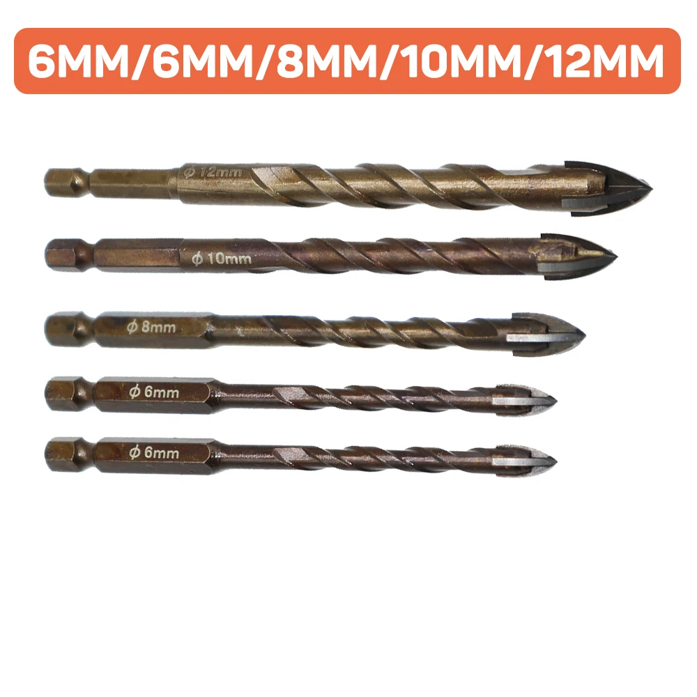 Набор сверл для плитки, набор сверл из сплава с шестигранным хвостовиком для стекла, керамики, бетона, треугольника, деревообработки, набор для открывания отверстий 34568 мм