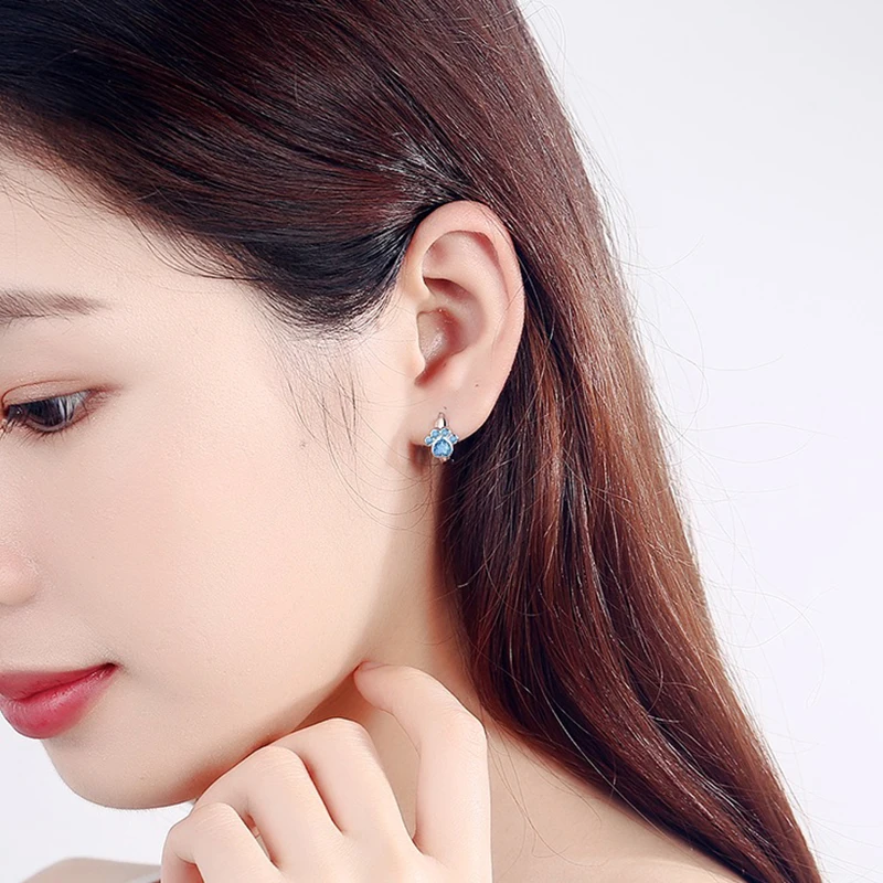 Женские серьги-гвоздики в виде кошачьей лапы, с голубым Цирконом