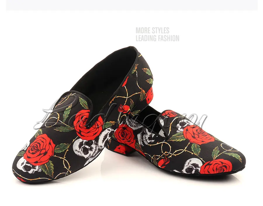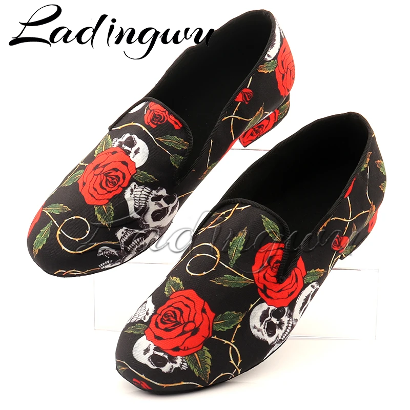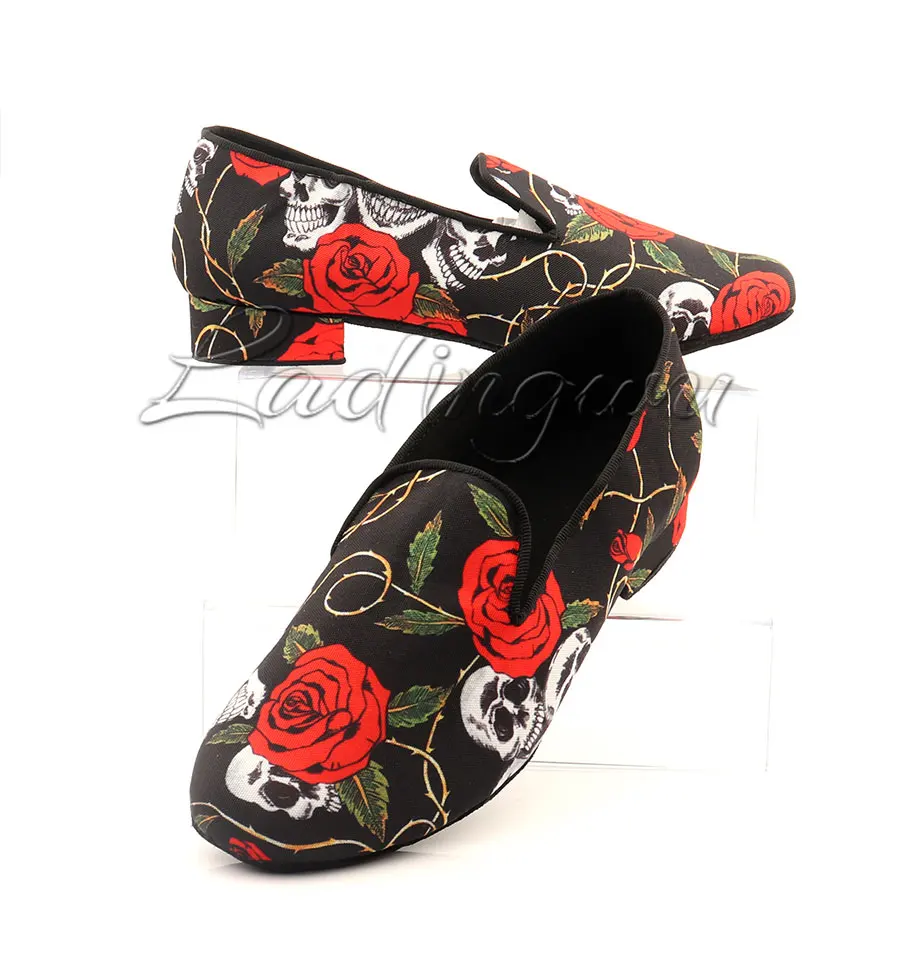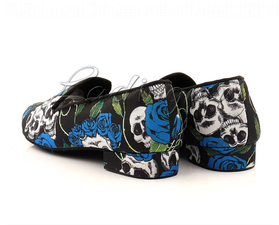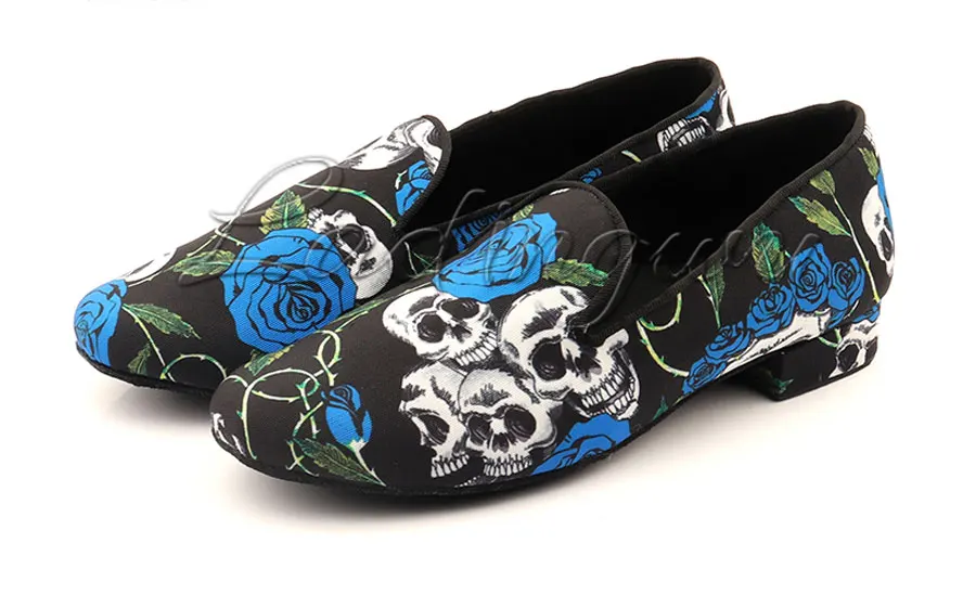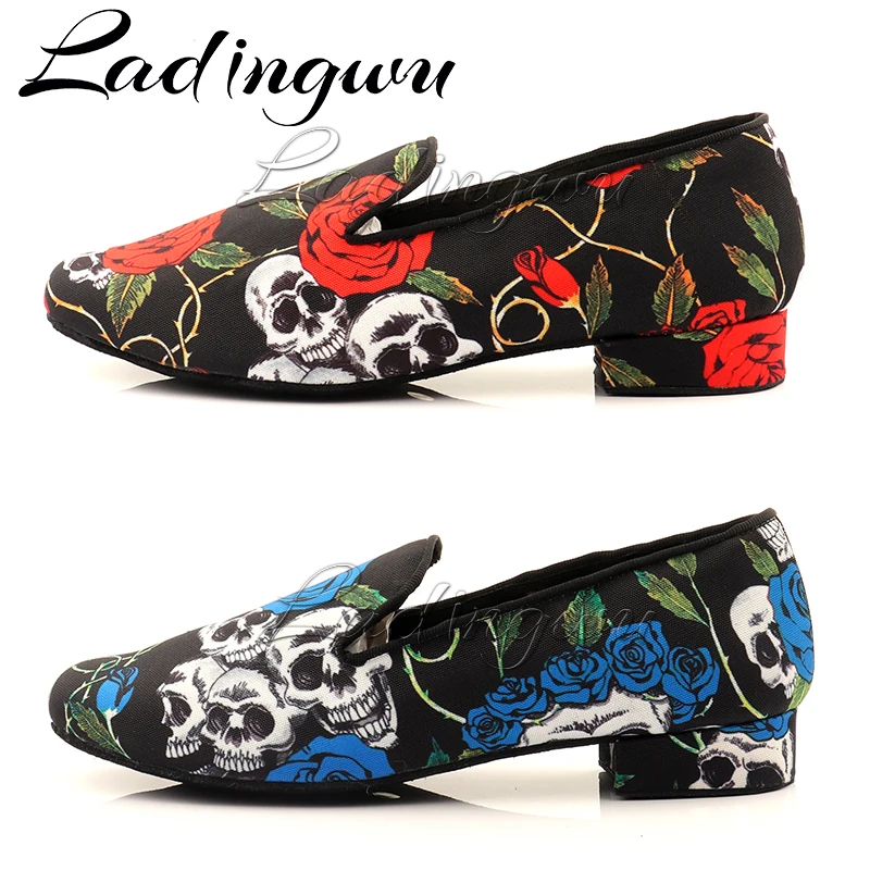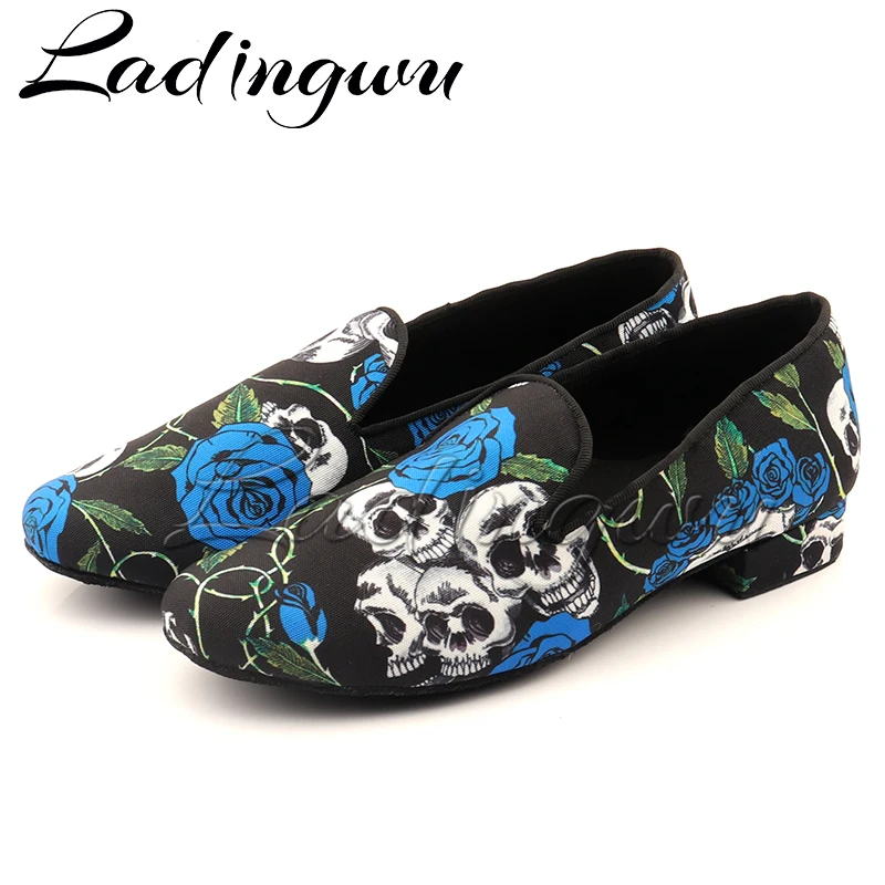 Мужские Танцевальные Туфли Ladingwu, профессиональные кроссовки для латиноамериканских танцев, Обувь для бальных танцев, Хэллоуин, Череп, джинсовые каракули, Мужские Танцевальные Туфли для танго, сальсы