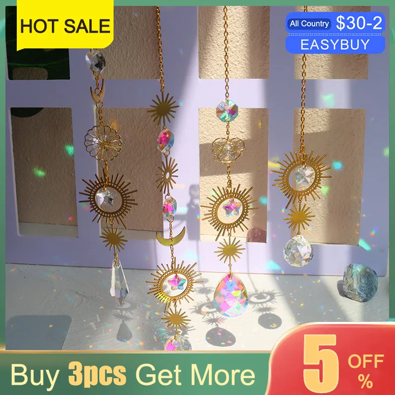 Хрустальные ветряные колокольчики ручной работы Подвеска Звезда Луна садовые колокольчики для окон подвесное украшение домашний декор Подарки для женщин