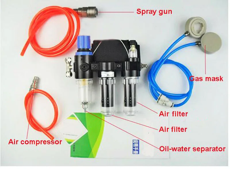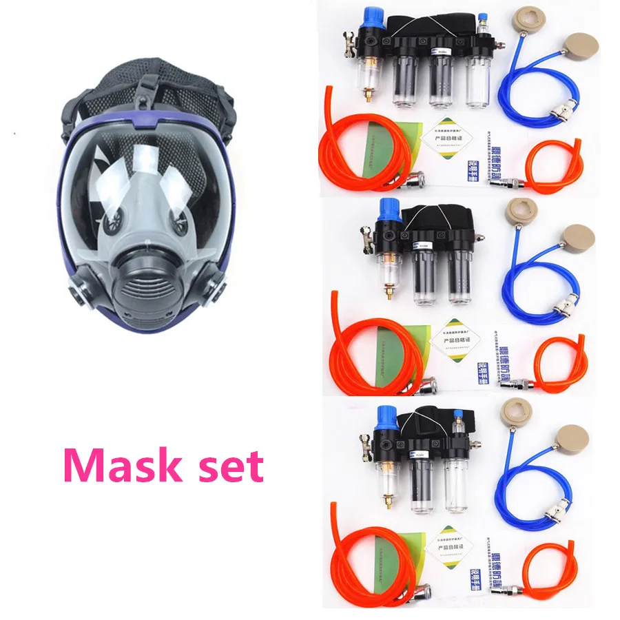 Система подачи воздуха 3 в 1: увлажнитель воздуха, воздушный фильтр и сепаратор масла и воды, без маски.Система подачи воздуха 4 в 1: увлажнитель воздуха, воздушный фильтр, воздушный фильтр и сепаратор масла и воды без маски.Двойная система подачи воздуха: воздушный фильтр, воздушный фильтр и масляно-Водный сепаратор без маски