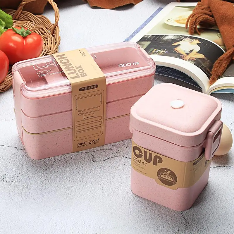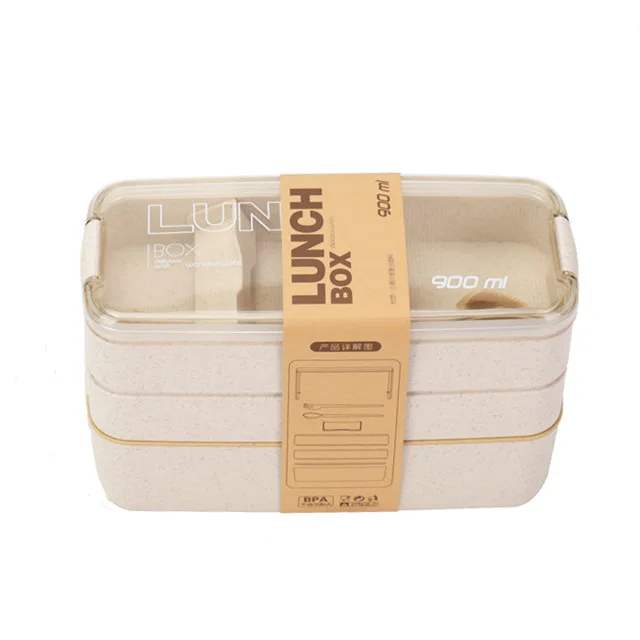 Ланч-бокс 3 слоя из экологически чистого материала, 900 мл, 3 слоя, бэнто-боксы из пшеничной соломы, обеденная посуда для микроволновой печи, контейнер для хранения пищи, Ланчбокс