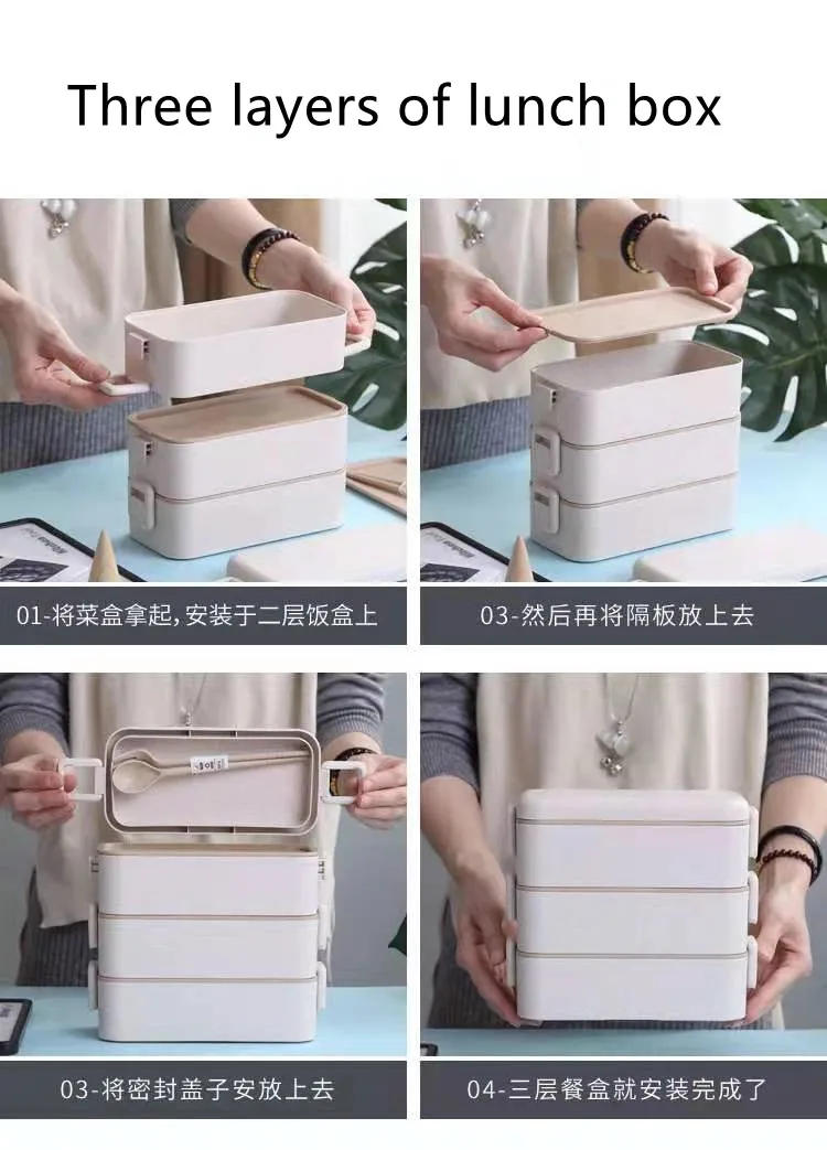 Gezonde Materiaal Lunchbox 3 слоя Tarwe Stro Bento дюжина магнетронных сервизов Voedsel Opslag контейнер Lunchbox