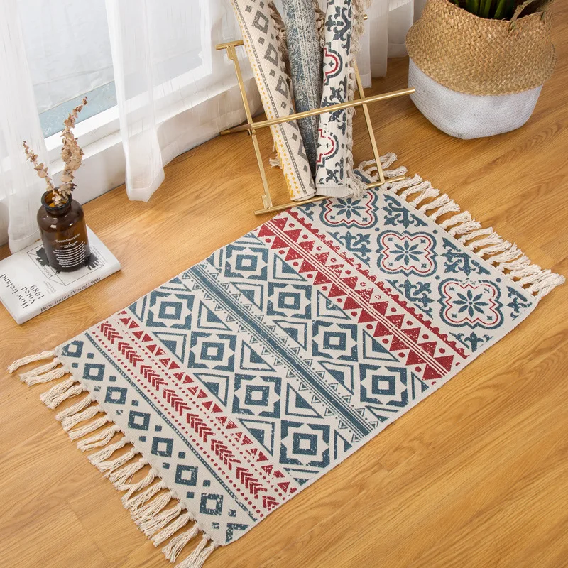 Вязаный плед в скандинавском стиле из хлопка и льна, ковер в этническом стиле, украшение для дома, небольшой ковер с кисточками, коврики для спальни и кухни, моющийся коврик в стиле бохо