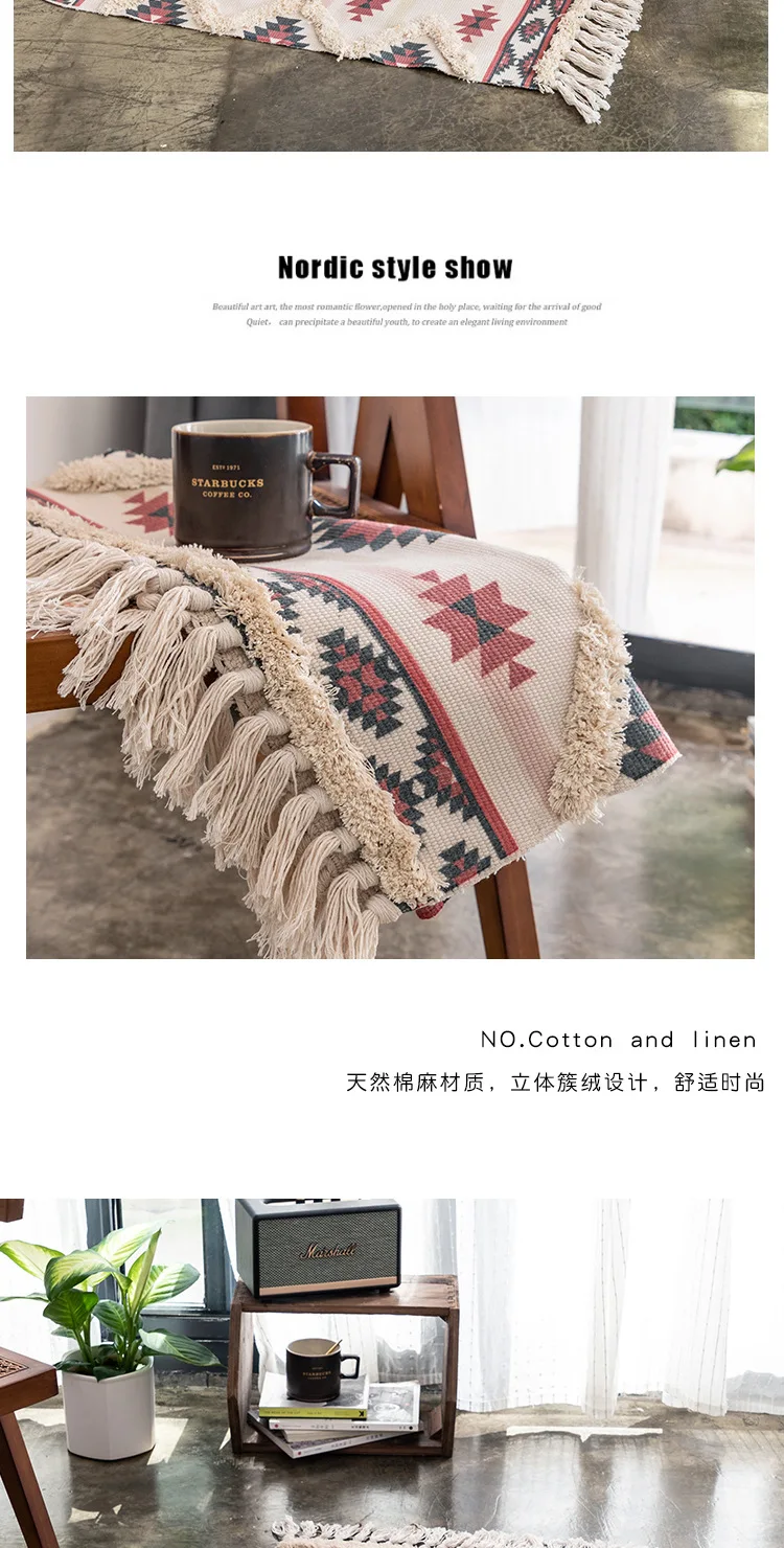 Ковер с бахромой из хлопка и льна в богемном стиле, ковер ручной ра...