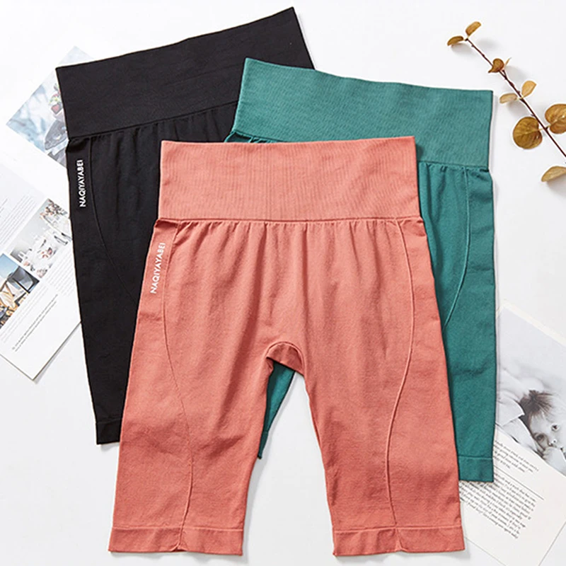 Шорты для тренировок с высокой талией, бесшовные шорты для фитнеса и йоги