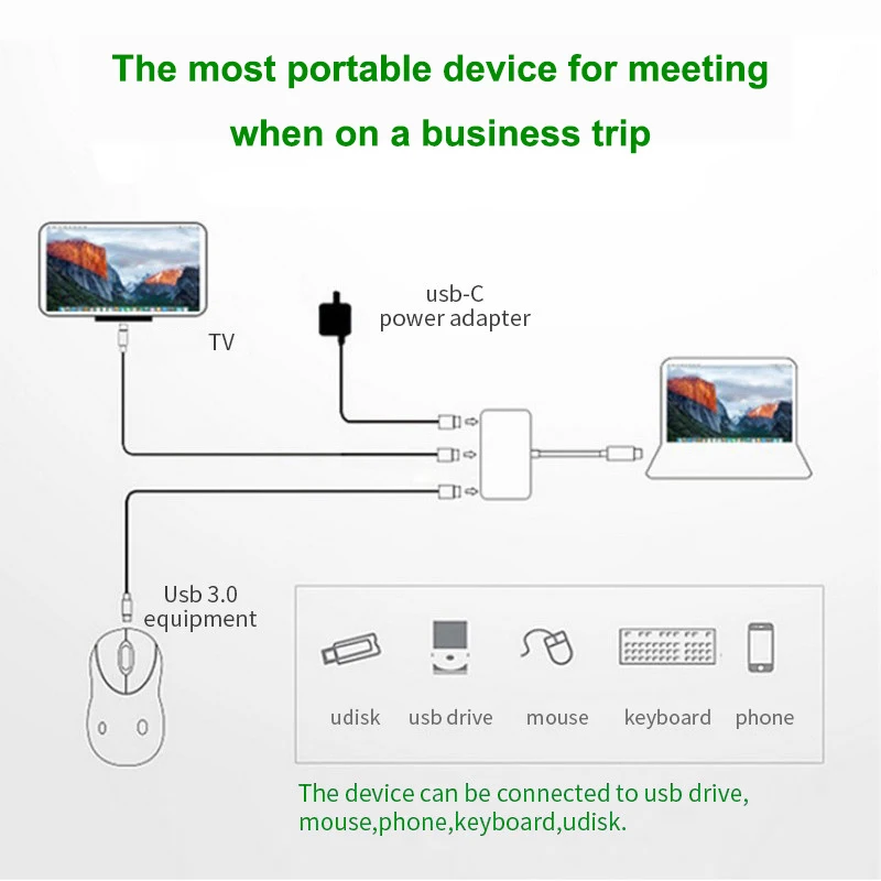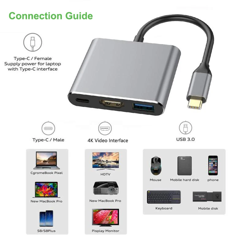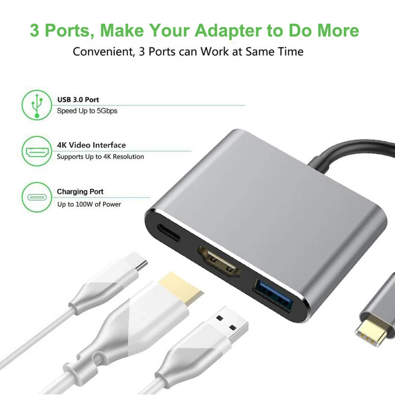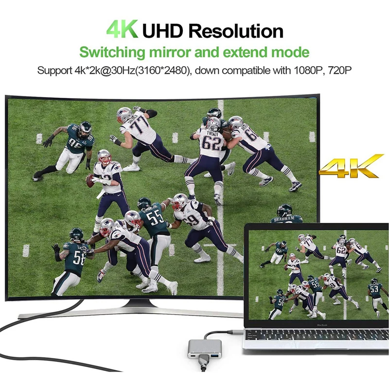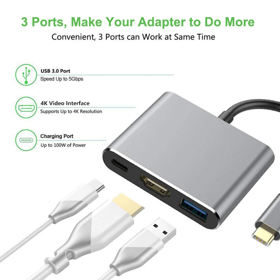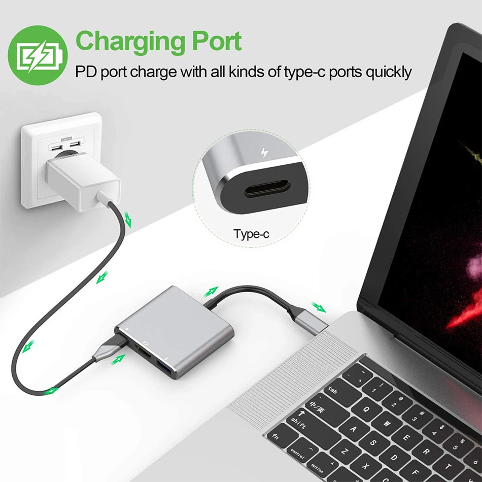 Адаптер USBC-Hdmi 3 в 1, совместимый с Apple Macbook монитором, коммутатор Type C, 30 Гц, 4K, разветвитель, док-станция