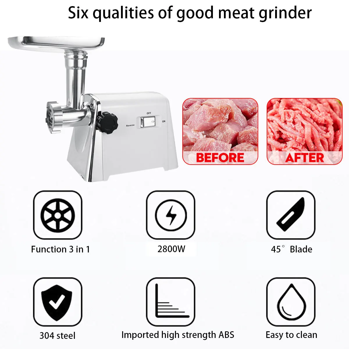 Мясорубка 3 в 1 электрическая, 2800 Вт, 220 В, из нержавеющей стали