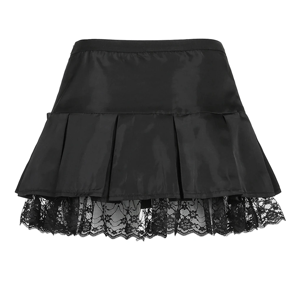 Черные плиссированные юбки Mall Goth, Женская кружевная мини-юбка с...