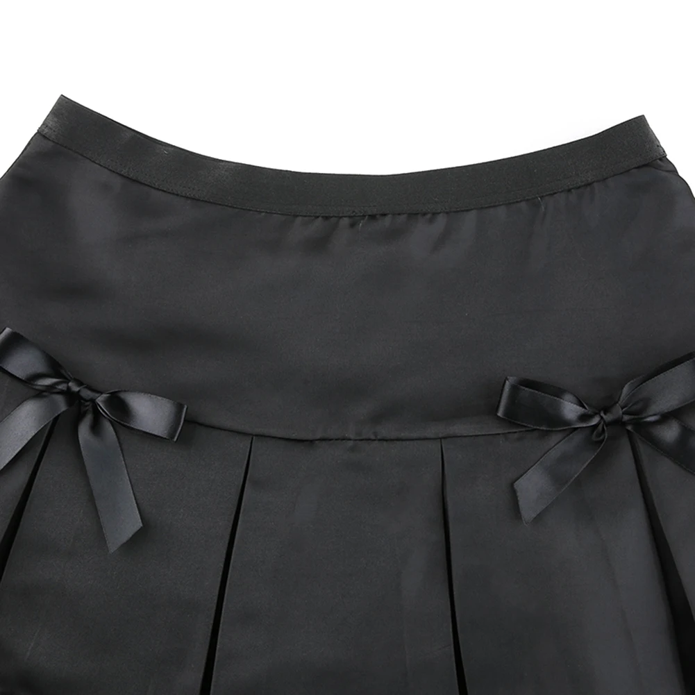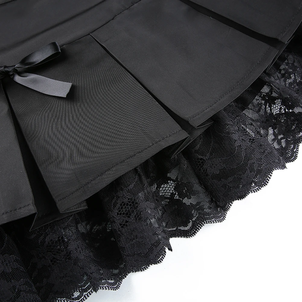Женская плиссированная короткая юбка, Сексуальная кружевная юбка с бантом, Готическая модная черная мини-юбка А-силуэта с высокой талией в стиле панк