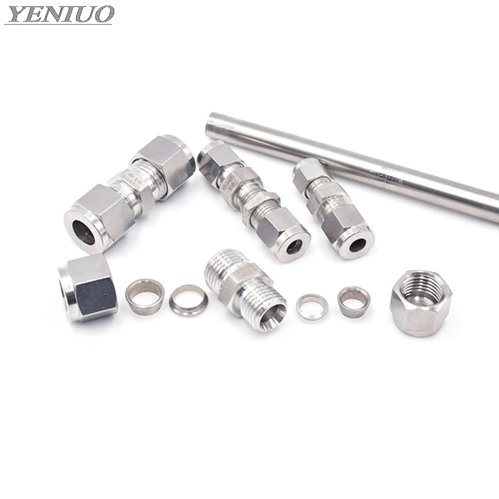 304 SS нержавеющая сталь 3 4 6 8 10 12 мм 18 "14" 38 "12" OD труба, ДВОЙНОЙ обжимной трубчатый фитинг, соединитель