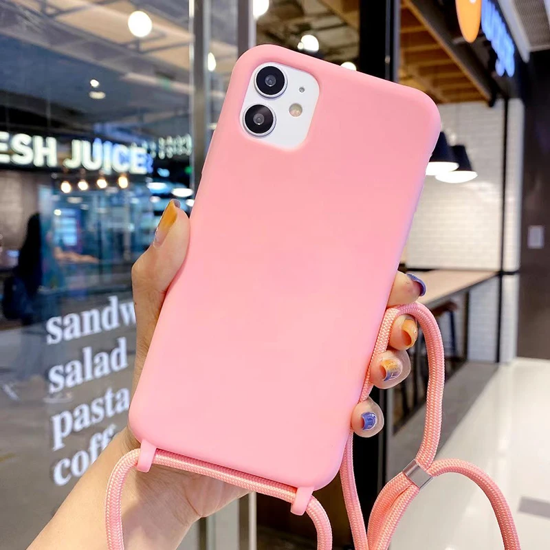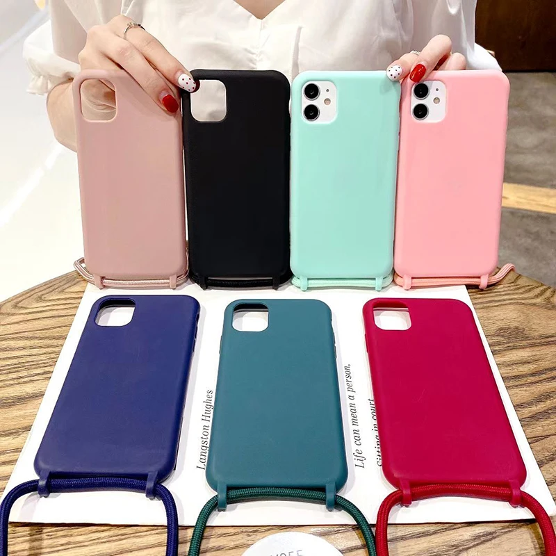 Чехол из жидкого силикона с ожерельем для телефона Samsung S21 S20 Plus S20 FE Note 20 Ultra A41 A51 A71 A81 A91, шнур через плечо, веревка, чехол