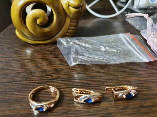 супер кольцо, 100 процентов с золотым не отличить, заказала второе на всякий случай в распродажу водой мочила следов и почернений нет, серьги тоже классные у меня комплектом покупала раздельно, побольше бы такого качества.