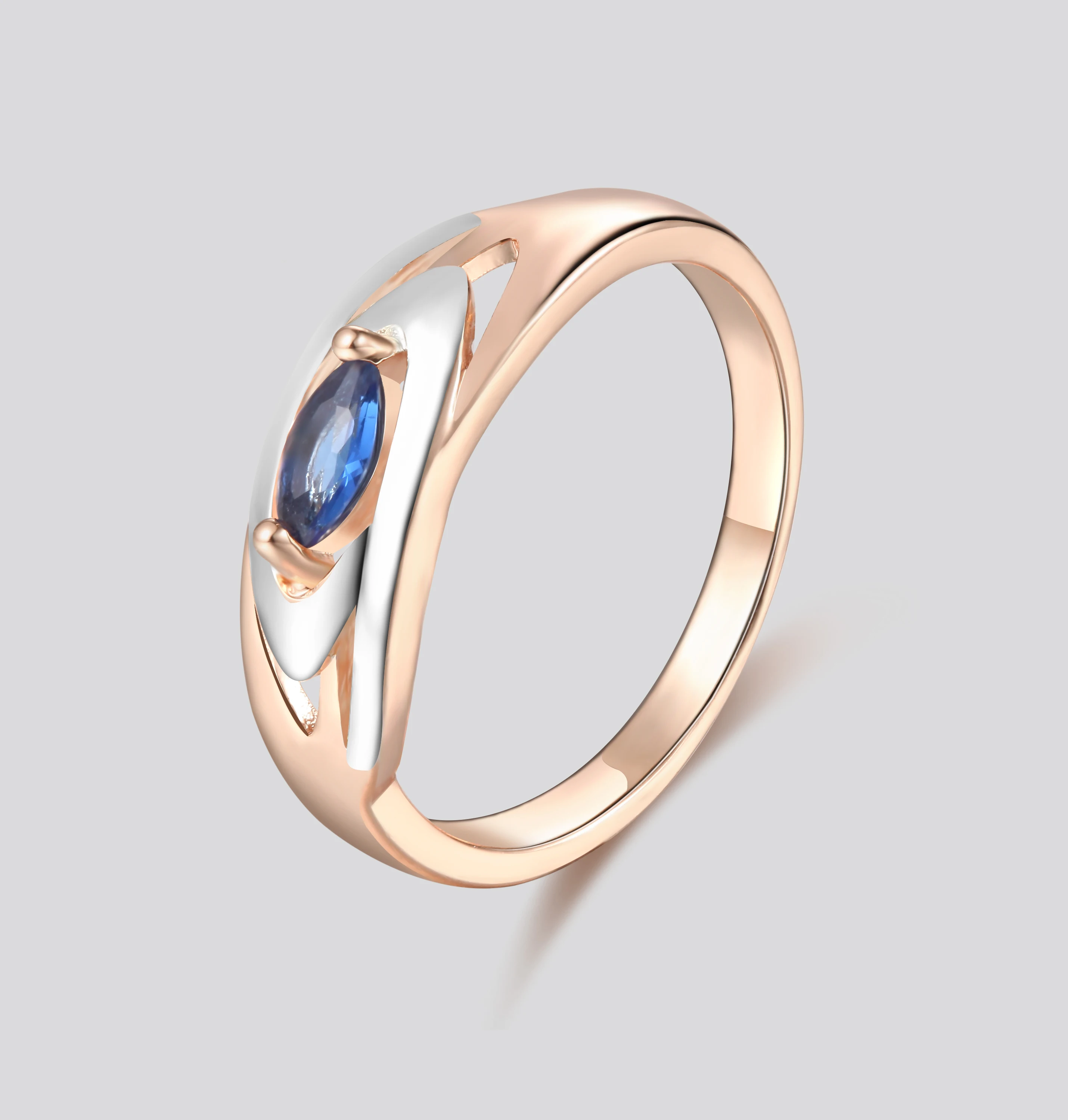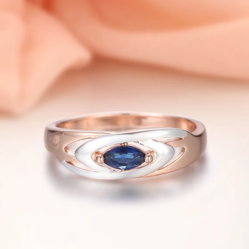 Женское Обручальное кольцо с белым королевским синим камнем, ювелирное изделие, Цвет Розовое золото 585 пробы, 1 шт.