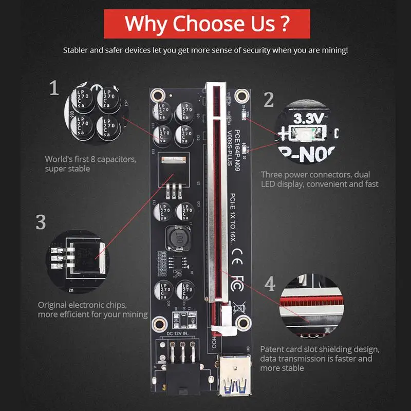 VER009S Plus PCI-E Riser Card PCI Express 1X to 16X USB 3,0 кабель ...