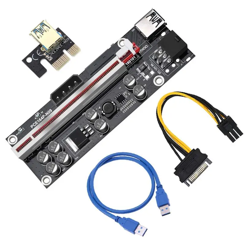 Переходная плата VER009S Plus PCI-E PCI Express 1X на 16X USB 3,0, кабель SATA на 6-контактный разъем для майнинга видеокарты