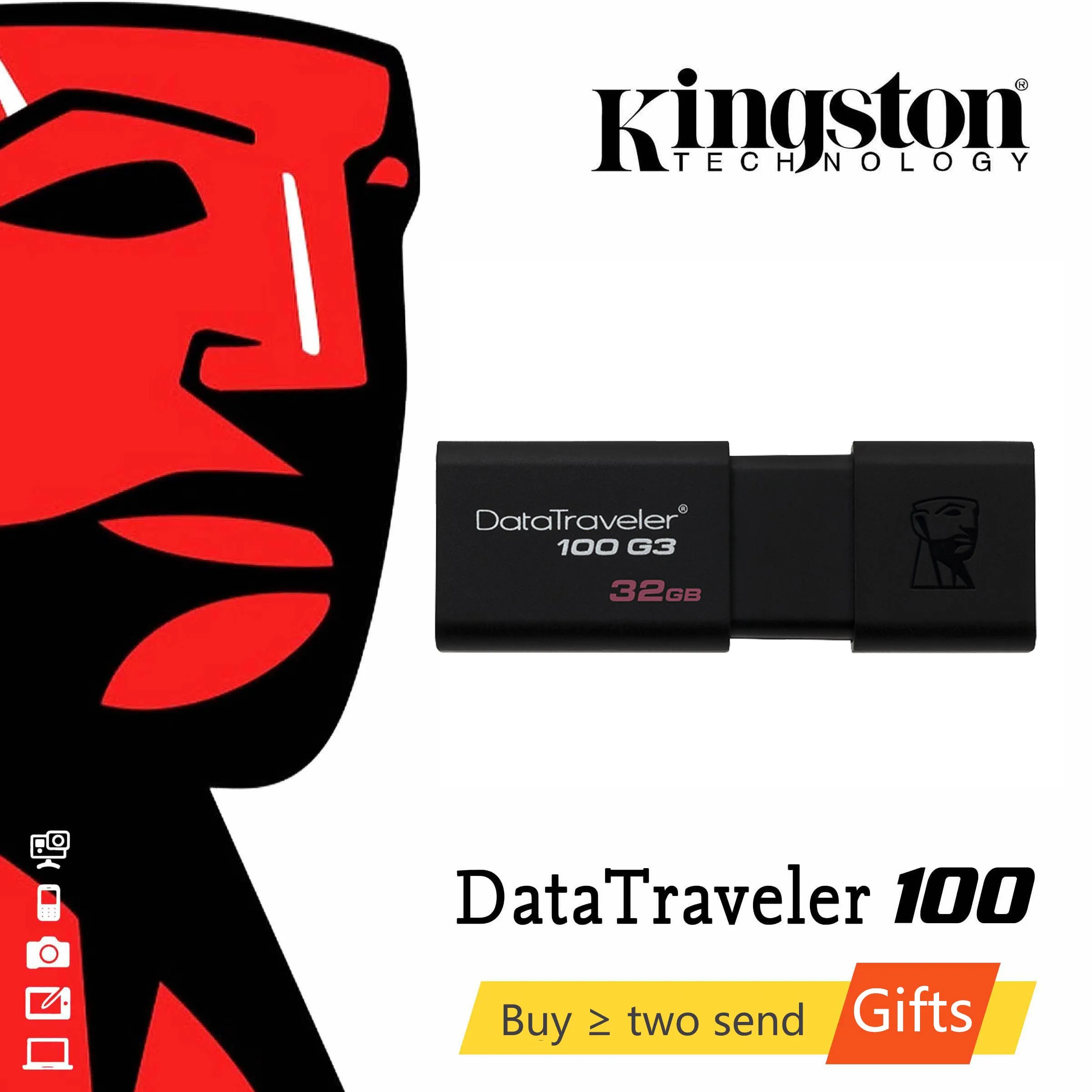 USB флеш-накопитель Kingston, 16 ГБ 32 ГБ 64 Гб 128 ГБ USB 3,0, пластиковый Гладкий флеш-накопитель, флеш-накопитель