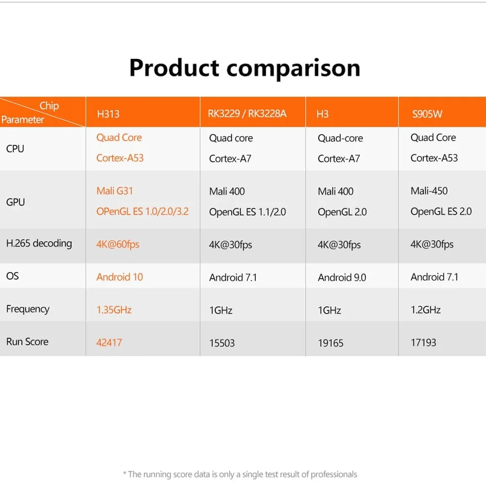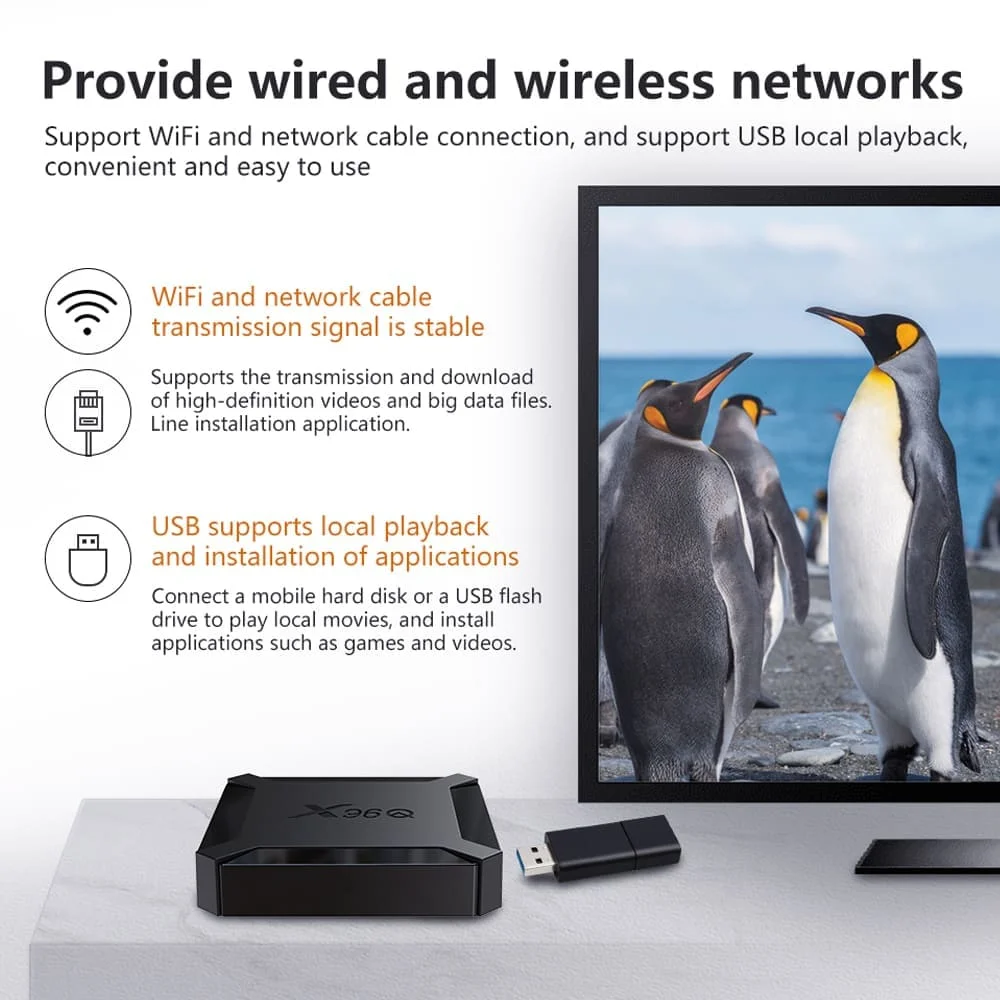 X96Q Smart TV Box - практичный домашний умный медиаплеер. Android 10.0 дает вам возможность запускать практически любое приложение Android на вашем телевизоре. Мощный четырехъядерный процессор Allwinner H313 ARM Cortex A53 с графическим чипом Penta Core Mali-G31 обеспечивает превосходную производительность для воспроизведения видео высокой четкости. Вы можете свободно наслаждаться всеми вашими любимыми фильмами, кулинарными шоу и развлекательными программами. Это принесет вам массу удовольствия и удобства! Основные характеристики: ● ОС Android 10.0 и Allwinner H313 Он поставляется с ОС Android 10.0, оснащенной высокопроизводительным четырехъядерным процессором Allwinner H313, в том числе графическим процессором Mali-G31. ● 1 ГБ ОЗУ + 8 ГБ ПЗУ 1 ГБ + 8 ГБ ПЗУ обеспечивают достаточно места для быстрого запуска устройства. Поддерживает чтение карт TF до 64 ГБ, это также значительно повышает надежность вашего ТВ-бокса. ● HEVC H.265 и VP9 Аппаратное декодирование H.265 и VP9 может сэкономить 50% ресурсов полосы пропускания, позволяя плавно смотреть фильм 4K. Каждая деталь экрана - это ясность. ● Разрешение UHD 4K Поддерживает аппаратное декодирование видео 4K UHD, которое обеспечивает просмотр в высоком разрешении и плавное воспроизведение видео, что делает его сигналом с самым высоким разрешением, доступным для домашних фильмов.