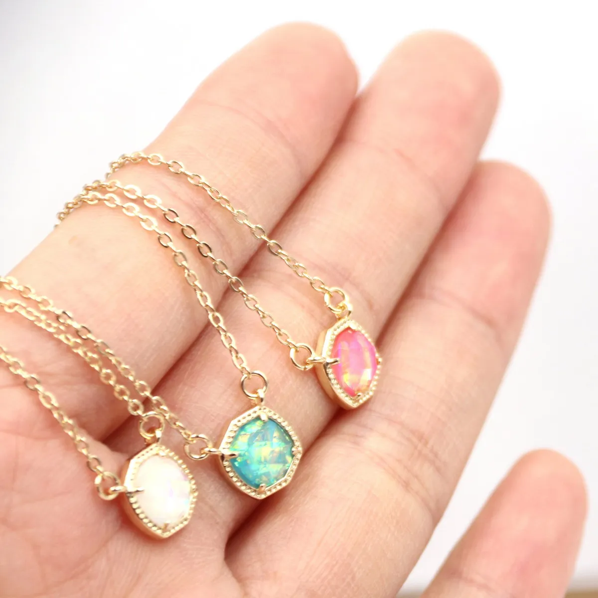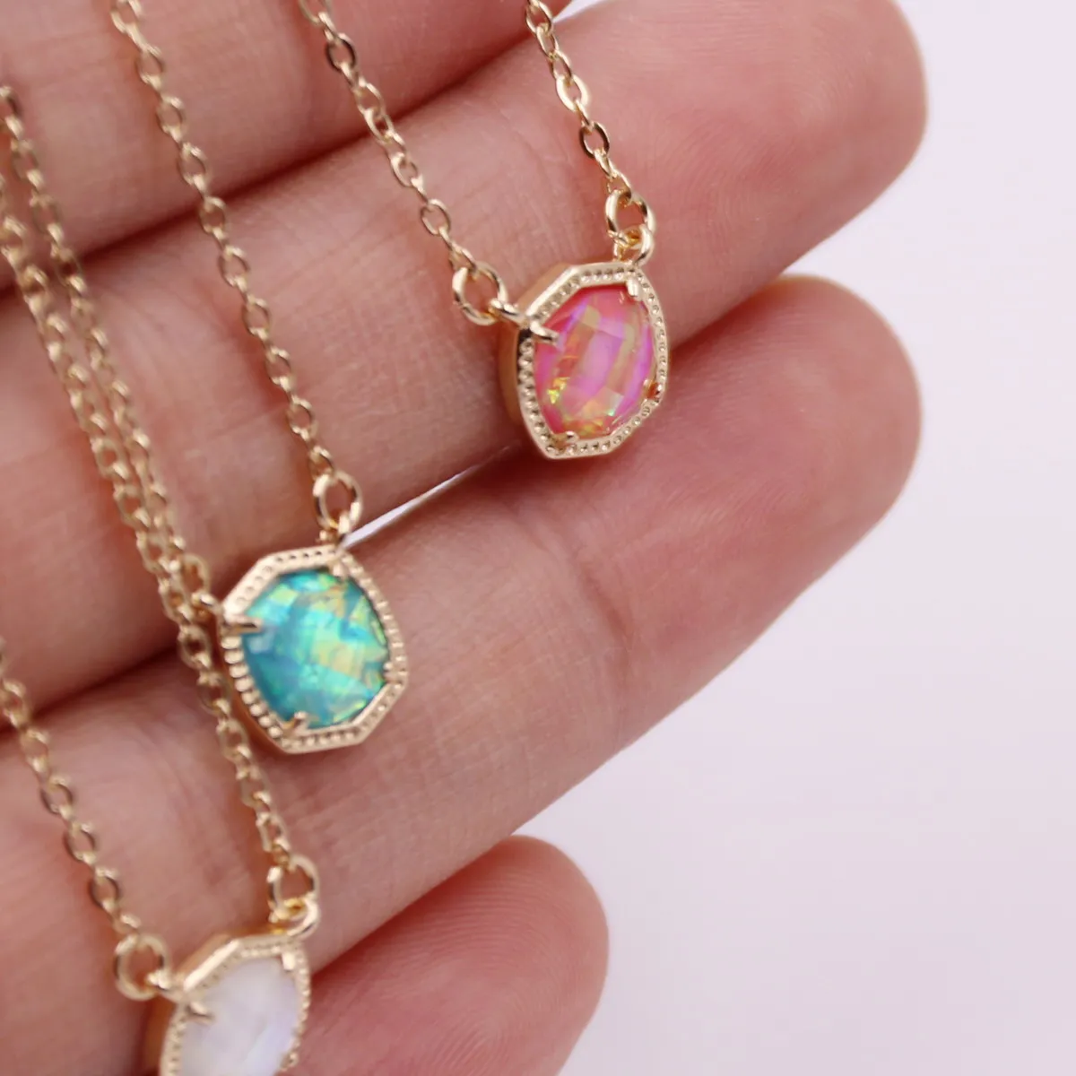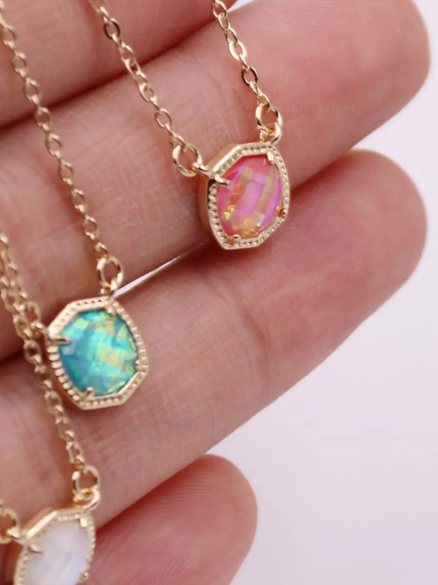 Женское колье с кристаллом AB, 5 цветов, подвеска-шестиугольник