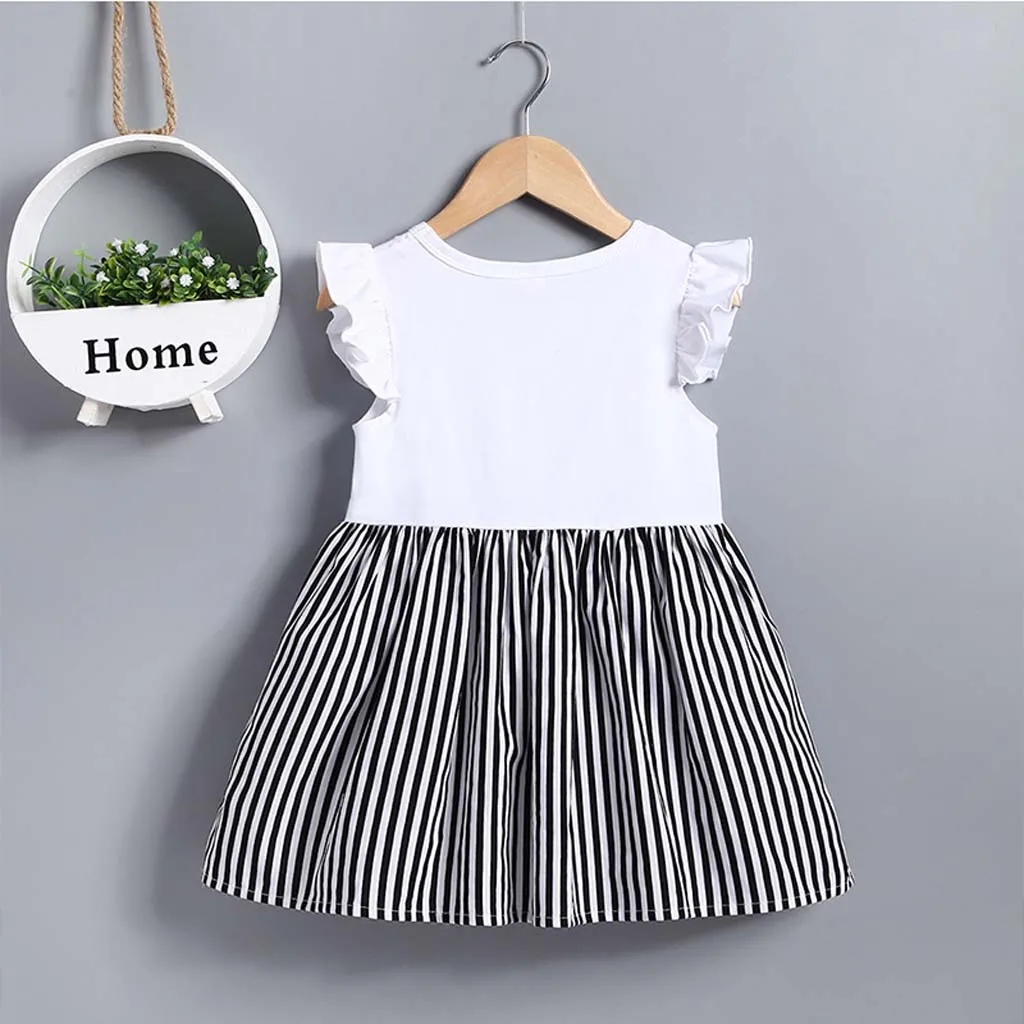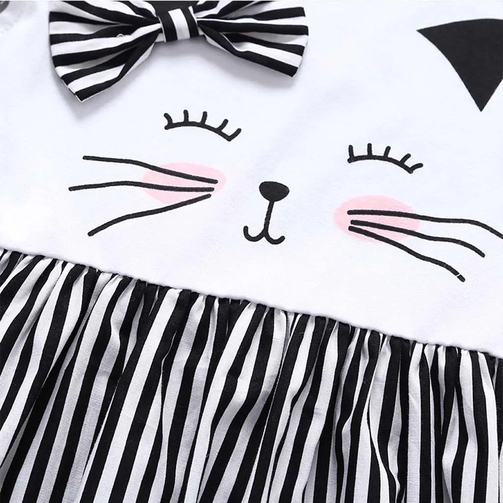 Платье принцессы в полоску без рукавов с рисунком кота для маленьких девочек; Одежда черно-белого цвета; Летнее платье для новорожденных; 2021