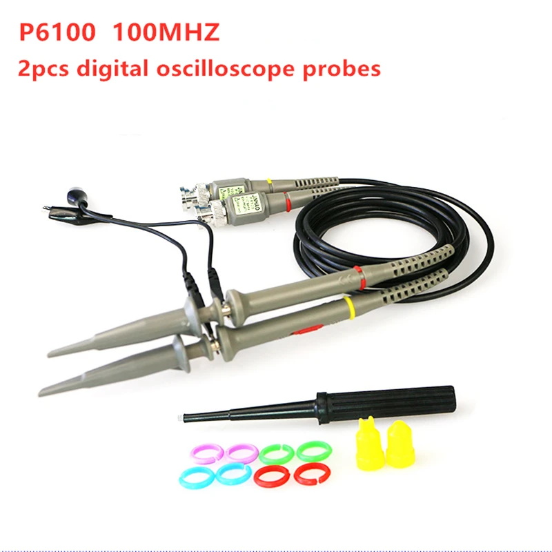 Комплект пробников-осциллографов P6100 BNC, высокоточные щупы-анализатор объема с зажимом типа крокодил, 100 МГц 1X 10X Mayitr, 2 шт.