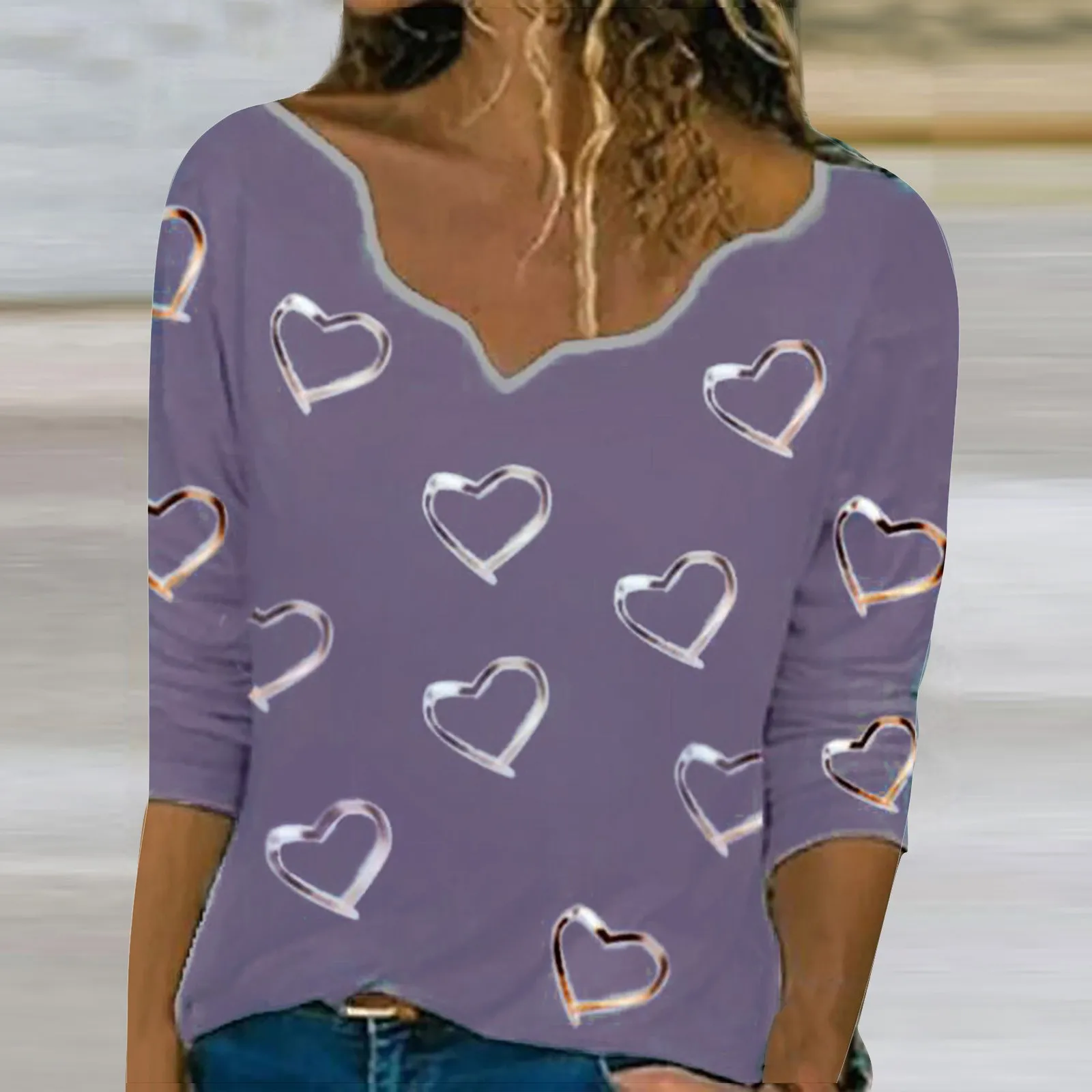 Размера плюс блузка женская с длинным рукавом, рубашка с принтом сердца для девушек, Новинка лета 2021, блузка с длинным рукавом и V-образным вырезом, Футболка # G4