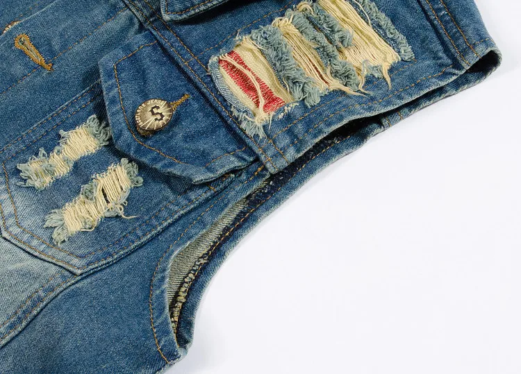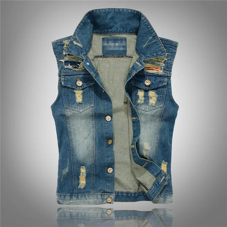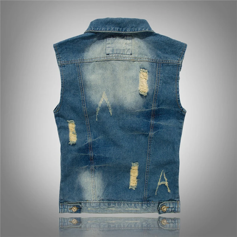 Новая рваная джинсовая куртка Для мужчин; Джинсовый жилет в стиле хип-хоп повседневные пальто жилет Для мужчин в ковбойском стиле без рукавов куртка мужская майка размера плюс