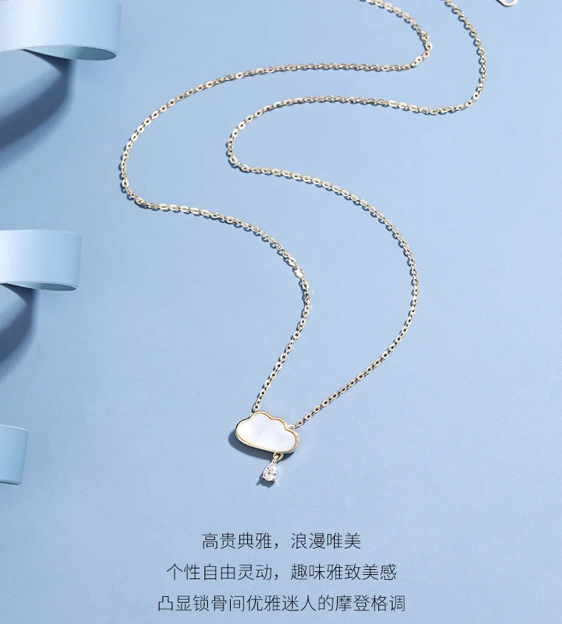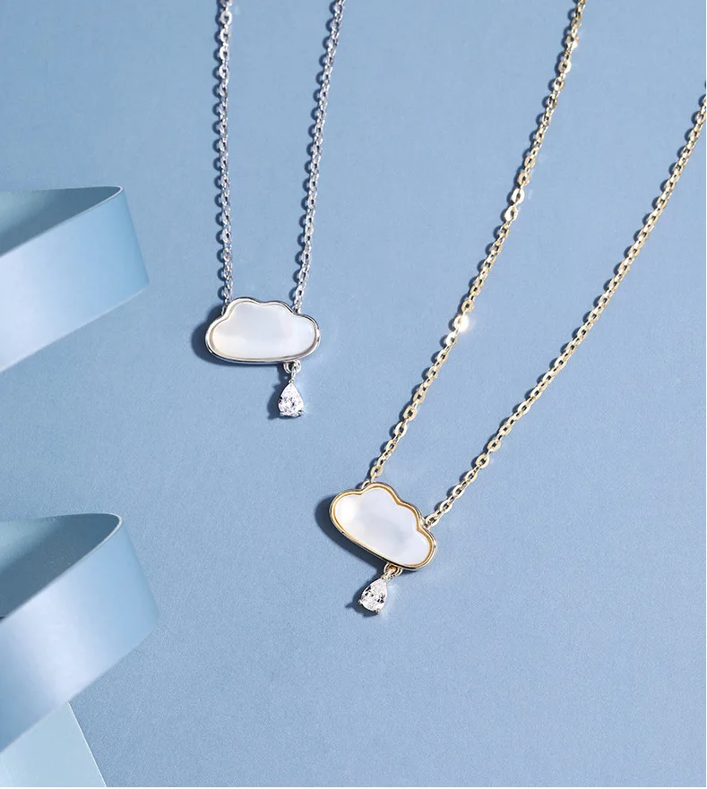 Женская мода S925 Посеребренная Платина Персонализированная ракушка белое облако кулон Темперамент Ожерелья 506