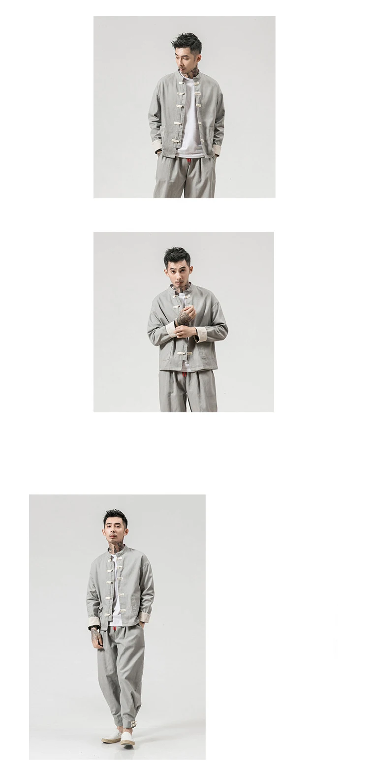 Мужские топы в китайском стиле Hanfu, штаны, костюм Тай-Чи, кунг-фу, комплект пиджаков, брюки, хлопковая льняная футболка, Восточная модная одежда