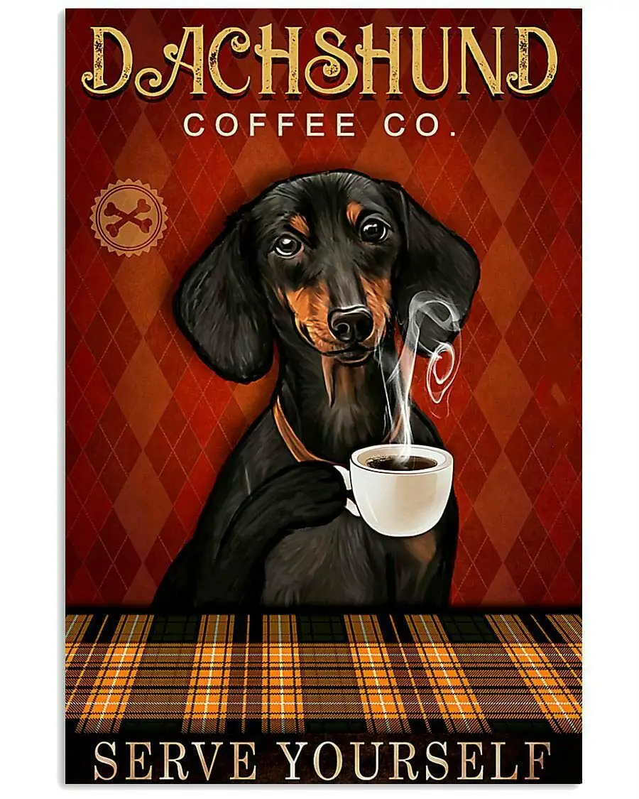 Такса Кофе Co служить себе Ретро жестяной знак для уличный гараж Семья кафе дощатой дверью Настенная Декорация в виде металлическая жестяная вывеска