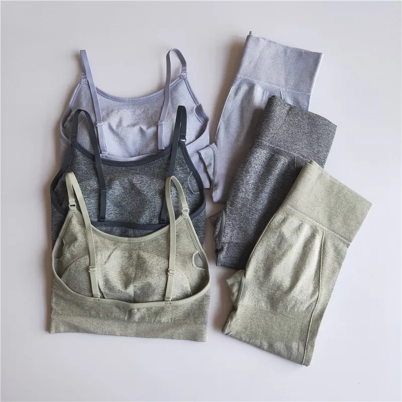 Высокая талия колготки для женщин тренажерный зал леггинсы и бюстгальтер 2 шт. Спортивная одежда для тренировок спортивные фитнес женские бесшовные комплекты для йоги