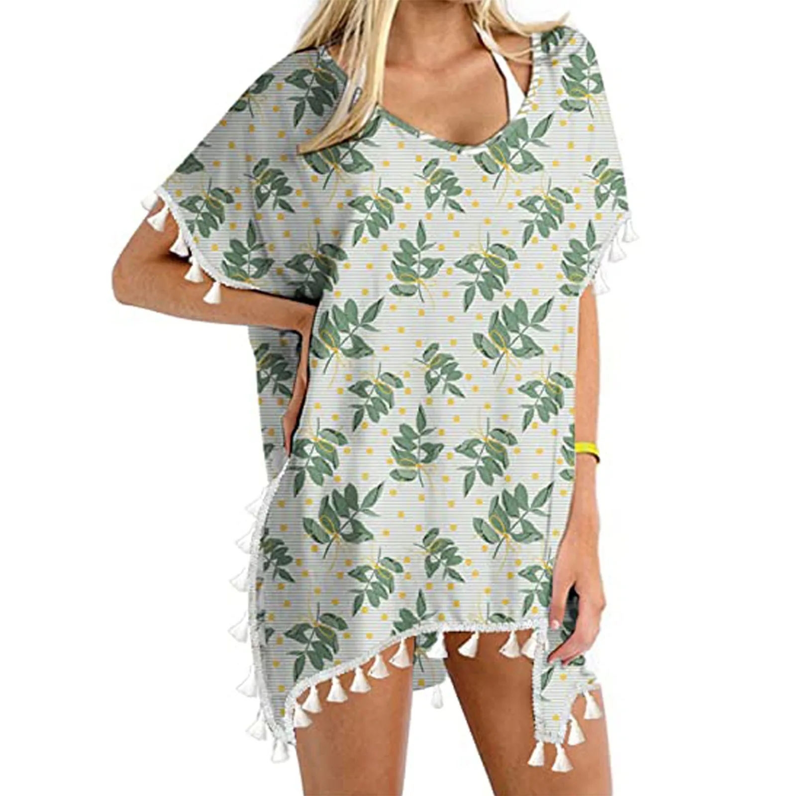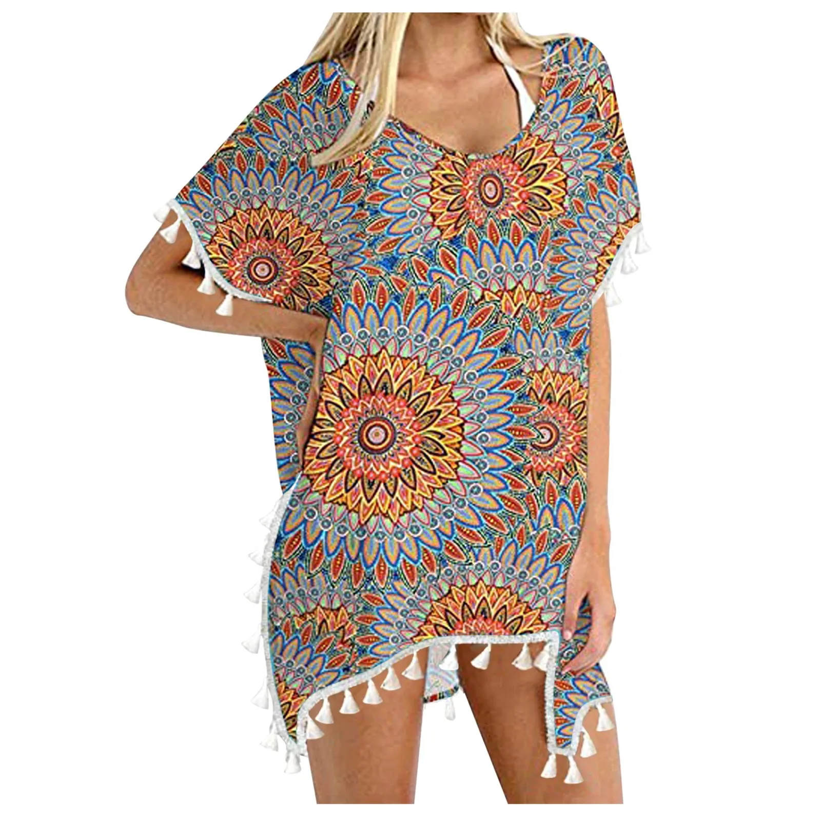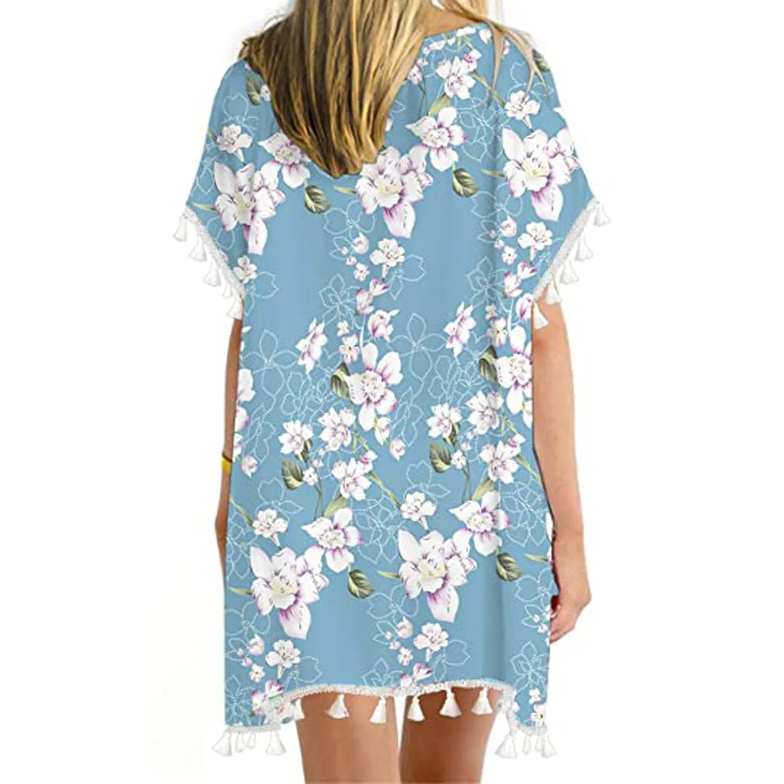 Женский летний купальник с отделкой, кафтан, шифоновый купальник с кисточками, Пляжная свободная накидка на бикини, топы Для дам, купальники женские 2021 # Z