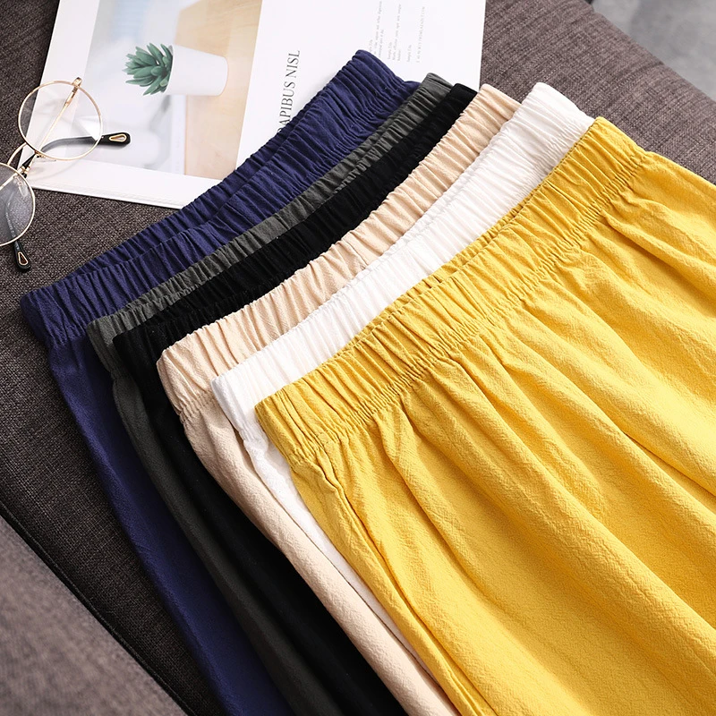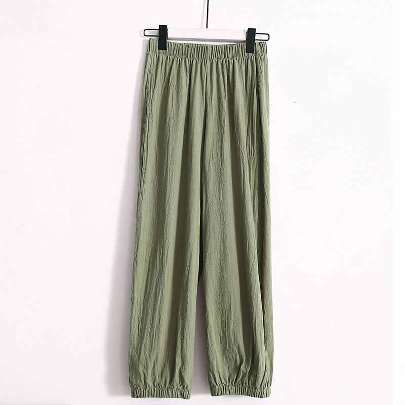 Брюки женские хлопково-льняные повседневные, однотонные базовые свободные султанки в стиле ретро, с эластичным поясом, весна-лето 2021