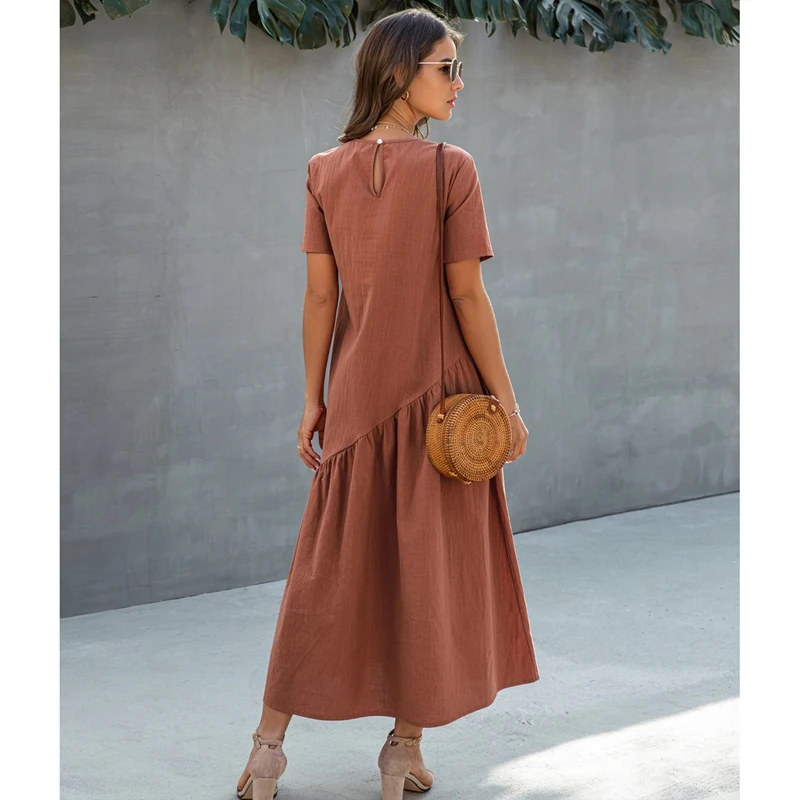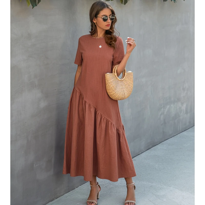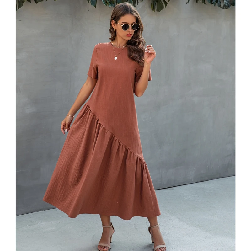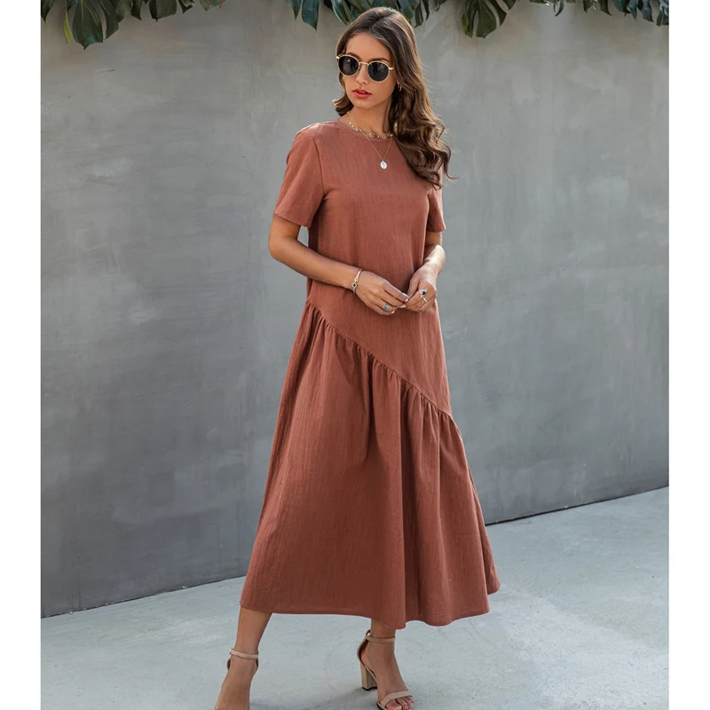 Женское платье-футболка, Летнее Длинное Платье С Рюшами, элегантное свободное платье миди