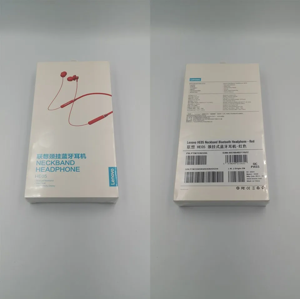 Оригинальные беспроводные наушники Lenovo HE05 Bluetooth 5,0 с шейным ободом для бега, спортивные наушники, водонепроницаемые, с шумоподавлением