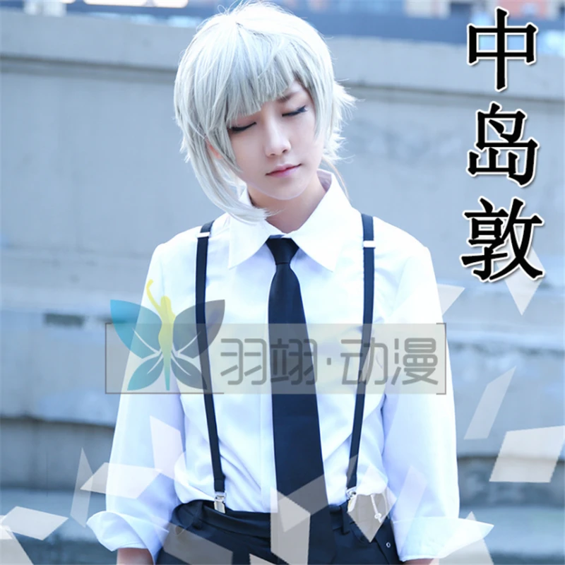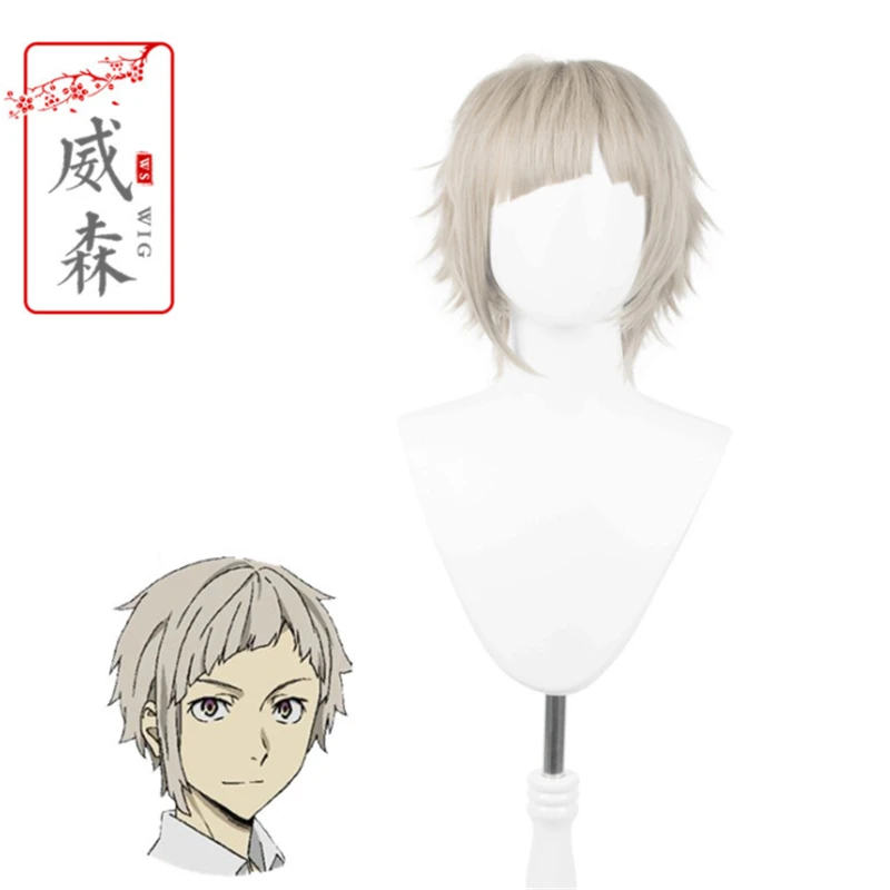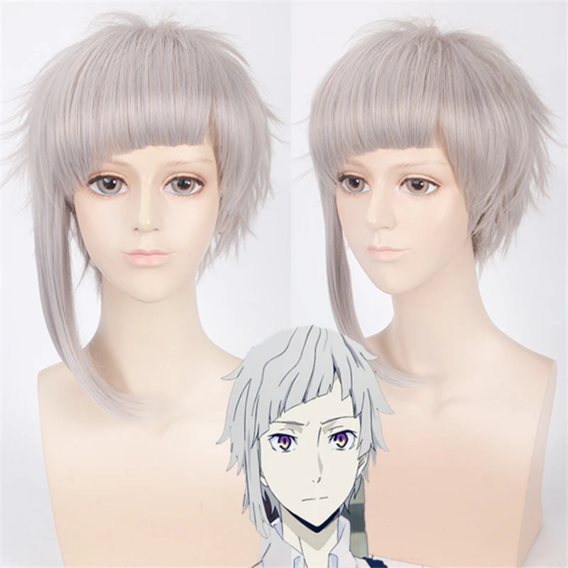 Парик с короткими серебристыми и серыми волосами Nakajima atсуши, парик для косплея аниме бродячие псы, синтетический парик для косплея, 35 см