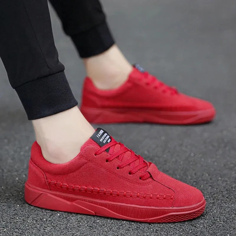 Кеды мужские кожаные, замшевые кроссовки, удобная повседневная обувь, плоская подошва, красные, летние