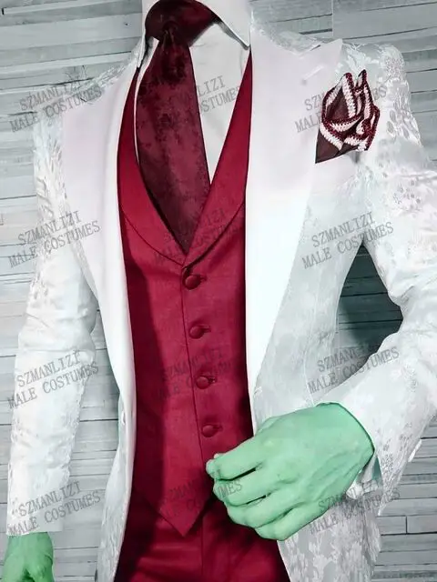 2021 официальный мужской костюм, вечерние приталенные костюмы из 3 предметов, белый блейзер с цветочным рисунком, королевский синий жилет, брюки, смокинг, свадебные костюмы для мужчин, костюм жениха