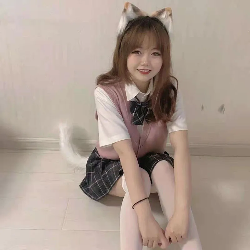 Имитация кошачьих ушей хвост для косплея, черные, белые, серые, представление на Хэллоуин, реквизит