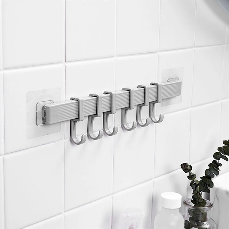 6 рядов крючков, прочный клейкий крючок, кухонная настенная подвесн...