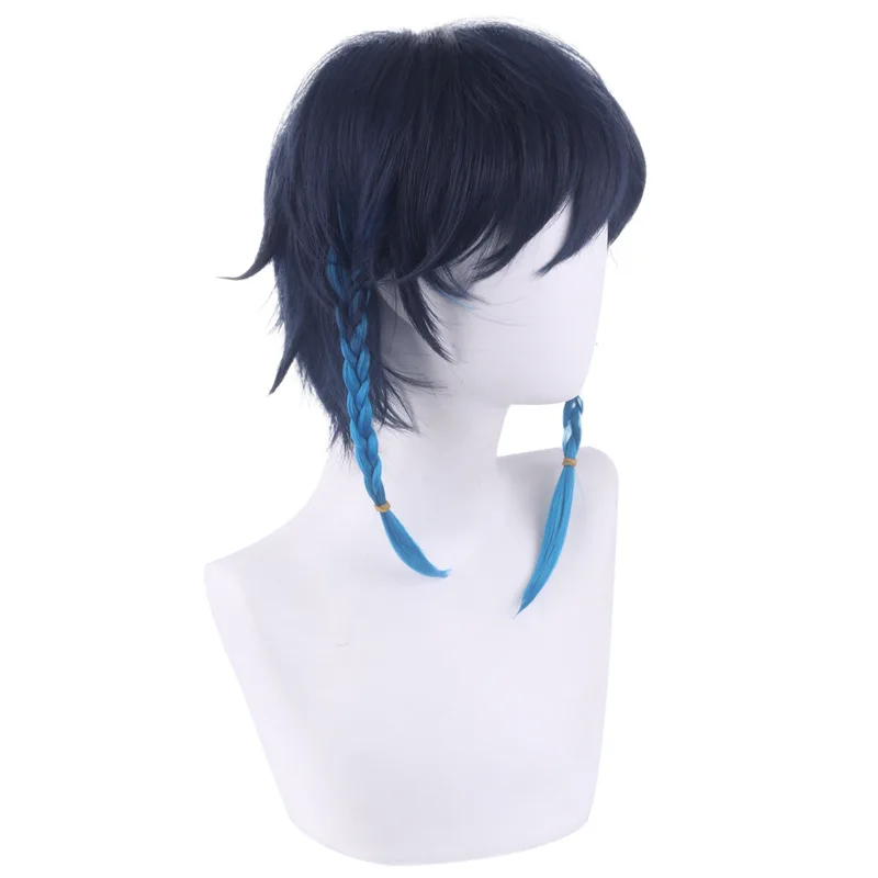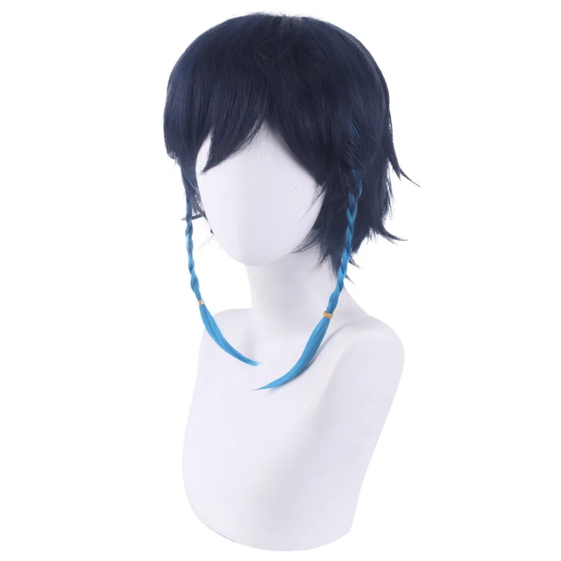 Парик для косплея Game Genshin Impact Venti, термостойкие короткие плетеные волосы из синтетических волос с градиентом, 35 см