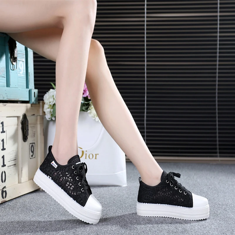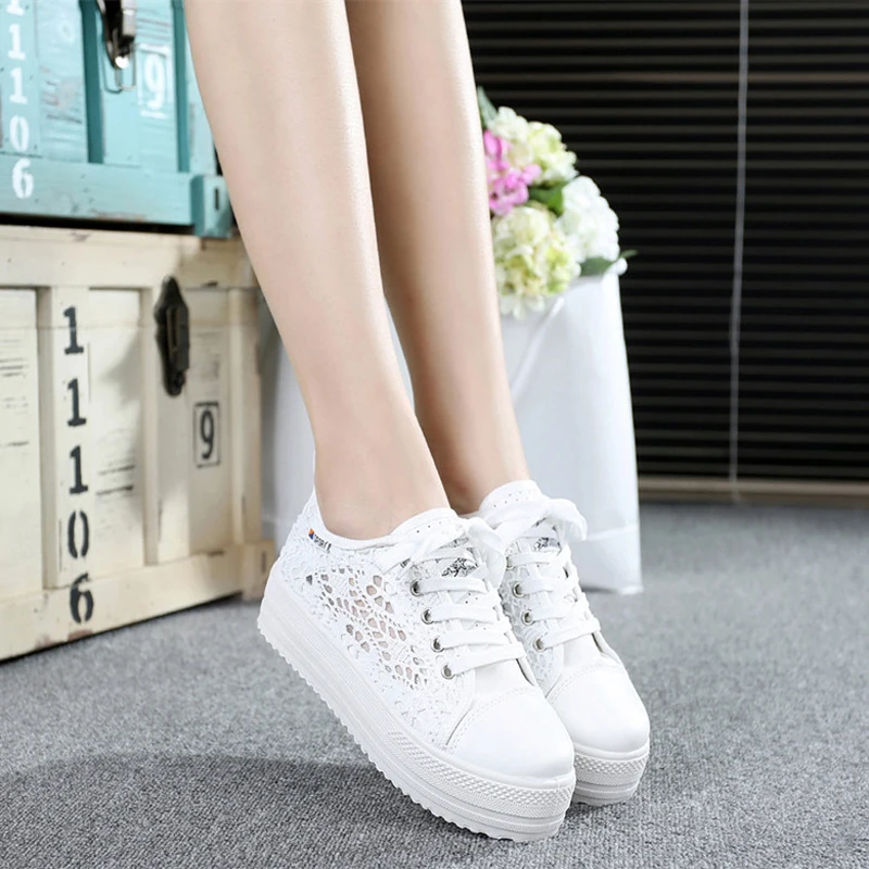 Кроссовки женские с вырезами, модные повседневные холщовые дышащие кеды на плоской платформе, с кружевом, белые, C8300, на лето